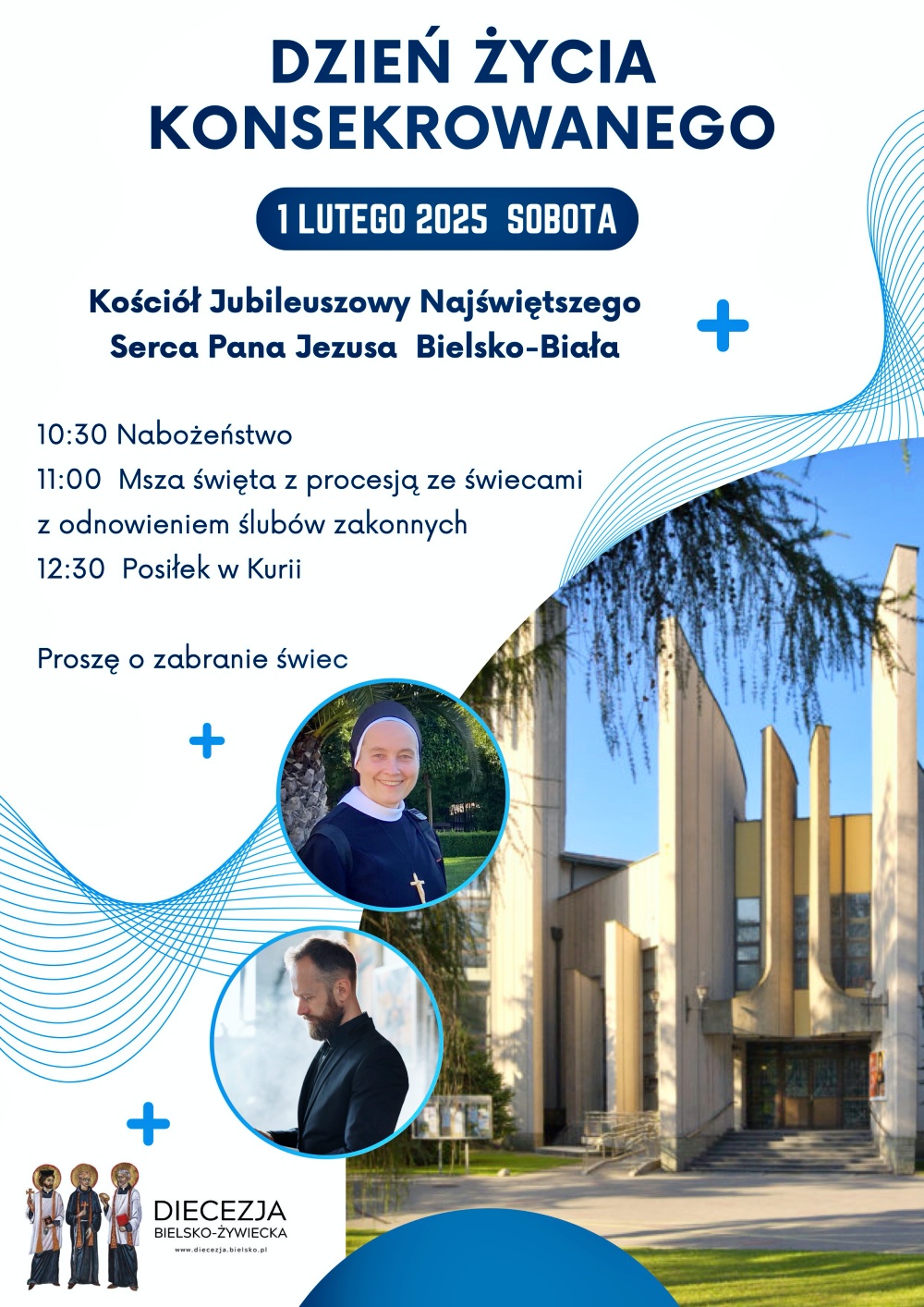 Zakonnice i zakonnicy, członkowie i członkinie Instytutów Świeckich oraz dziewice konsekrowane, wdowy i pustelnicy spotkają się 1 lutego 2025 r., w przeddzień Święta Ofiarowania Pańskiego, w kościele jubileuszowym pw. NSPJ w Bielsku-Białej. Mszę św. sprawował będzie tego dnia o godz. 11.00 bp Roman Pindel.