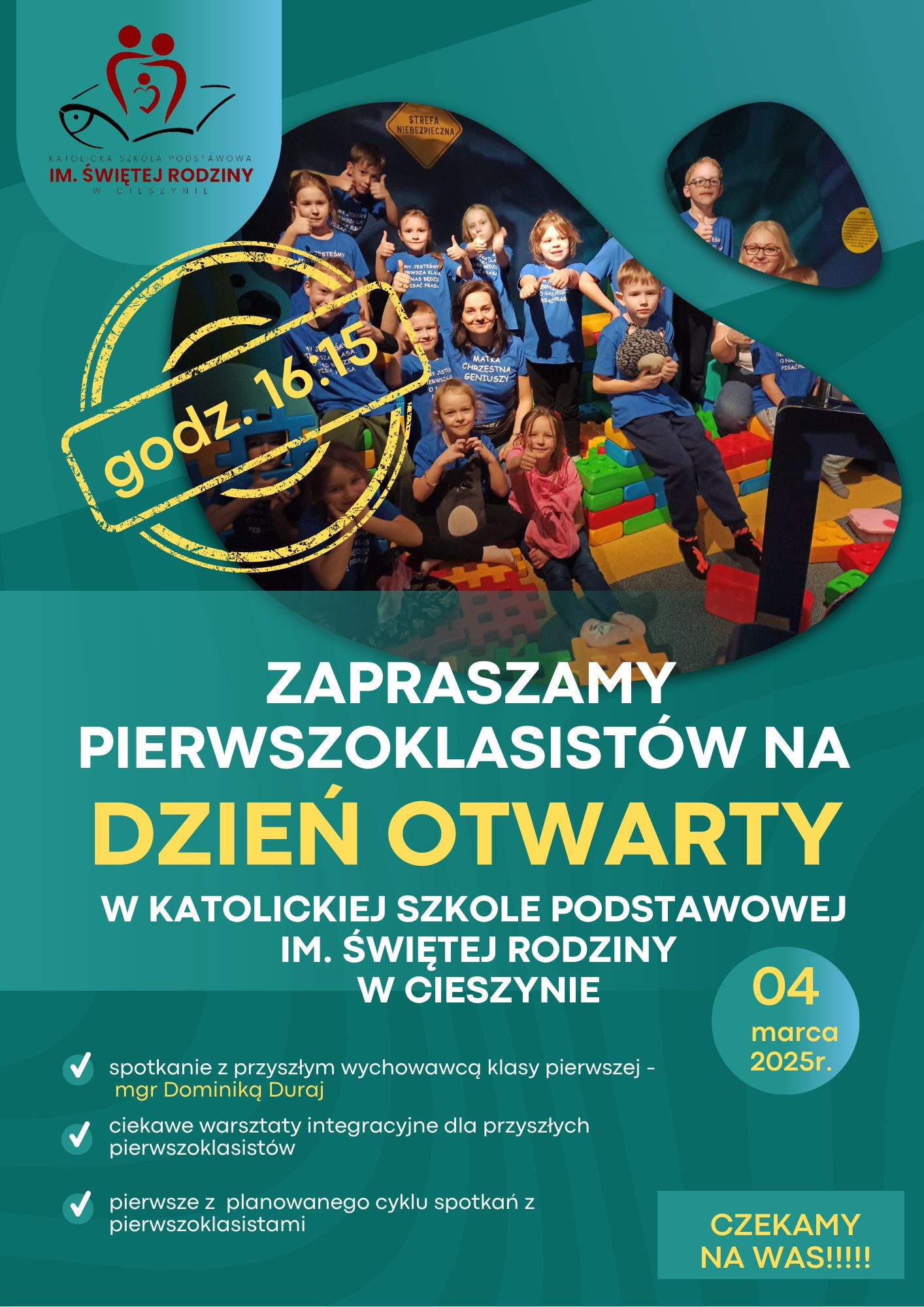 Katolicka Szkoła Podstawowa im. Świętej Rodziny w Cieszynie zaprasza przyszłych pierwszoklasistów na Dzień Otwarty, który odbędzie się 4 marca 2025 r. o godz. 16:15.