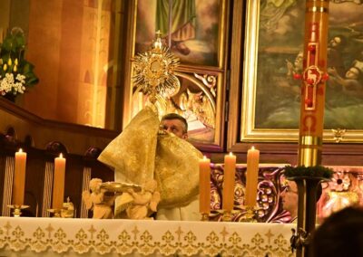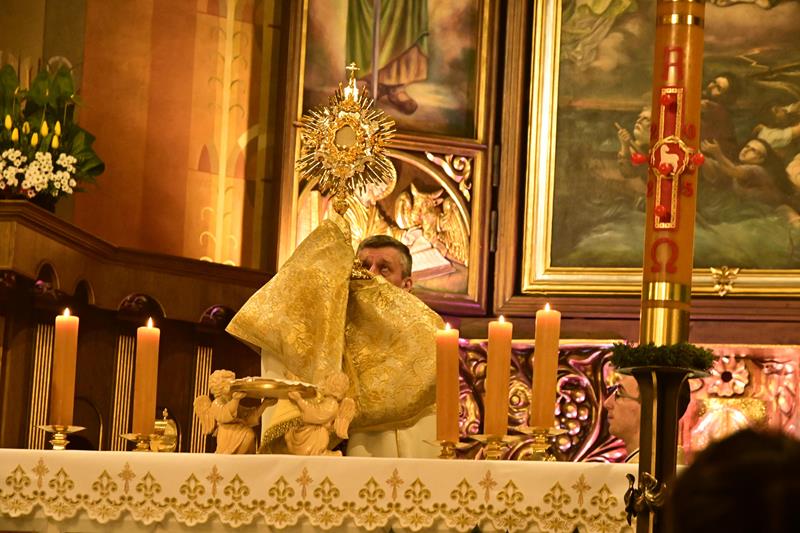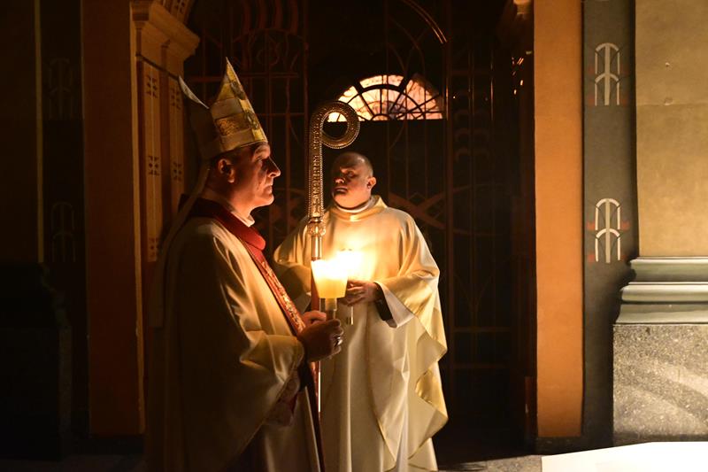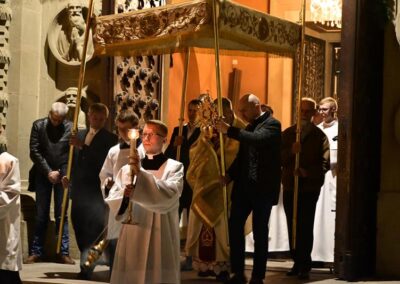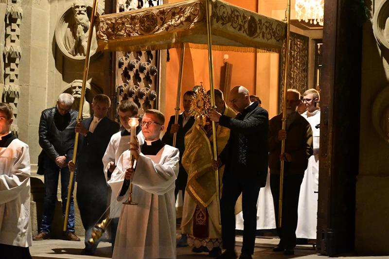 Liturgię Wielkiej Soboty zakończyła procesja wokół katedry, po której ks. biskup Roman udzielił licznie zebranym wiernym uroczystego błogosławieństwa Najświętszym Sakramentem.