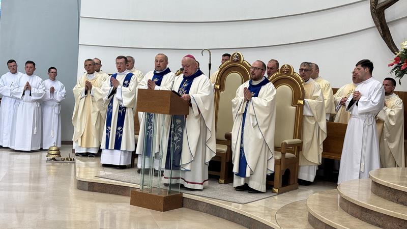 W dalszej części homilii ks. biskup Piotr powiedział, że pomiędzy Kościołem, a światem istniało, istnieje i zawsze będzie obecne swoiste napięcie. Kościół i świat się różnią. Kościół jest i musi być zdecydowanie inny. Chrześcijanie są w tym świecie, ale nie są z tego świata. Właściwym zadaniem Kościoła nie jest poszukiwanie tego, co wspólne ze światem, ale przekazanie światu Boga i tego, co On nieustannie daje. Zasadnicza musi pozostać misja przekazania tego, czego świat nie posiada. Kościół jest posłany, aby świat oświecać i obdarowywać obecnością zbawiającego Boga. Przekazywanie tego, czego świat jest pozbawiony, sprawia, że między Kościołem a światem nie ma równości i symetrii. Współcześnie ten fakt jest dla niektórych chrześcijan wstydliwy, bo kojarzy się z poczuciem wyższości – a katolik nie chce dzisiaj przemawiać do świata z takiej pozycji. Wstydzi się takiej postawy i uważa ją za przejaw pychy. Jeśli jednak z tego zrezygnujemy, tym samym przyznamy, że nie mamy światu właściwie niczego do zaoferowania. Zastrzegł, że świat nie może dyktować, jaki ma być Kościół. Pan Jezus jako jedyny ma prawo mówić, jacy mają być Jego uczniowie, którym nie wolno poddawać się oczekiwaniom świata. Zatem postulat, jakoby Kościół miał wyjść naprzeciw współczesnym problemom, gdyż nie może być na nie obojętny, jest słuszny, ale to nie oznacza, że Kościół musi się wewnętrznie zmienić pod ich dyktando. Nie wolno nam świata i Kościoła stawiać na jednej płaszczyźnie. Wobec Kościoła powinniśmy zachować miłość i wierność; wobec świata – miłość do ludzi i daleko posuniętą ostrożność względem panujących w nim zasad. Kościół, który zawsze się odnawia, ma nie przybierać roli towarzysza i kompana, ale mądrej, roztropnej i zatroskanej matki. We wzajemnej relacji Kościoła i świata przychodzi czas stawiania pytań. Szukając odpowiedzi, Kościół musi kierować pytania do Boga, do Ducha Świętego, a nie do świata. Stawiając pytania musimy być gotowi na odpowiedź; trzeba nauczyć się słuchać, a miewamy z tym nieraz problem. Pojawia się on nie dlatego, że za mało słuchamy świata. Słuchamy go aż za bardzo – jednak bez właściwego rozeznania. Problemem jest to, że przestajemy słuchać Boga, a zaczynamy kształtować swoją codzienność według propozycji tego świata.