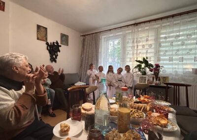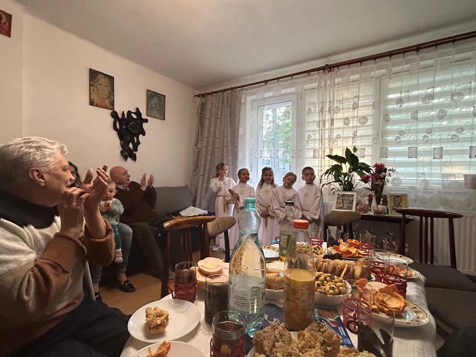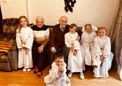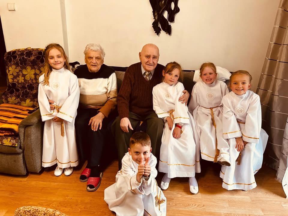 Dzieci z Parafii Najświętszego Imienia Marii Panny w Cieszynie prosiły chorych, aby ofiarowali swoje cierpienia i modlitwy w intencji dobrego przygotowania ich do przyjęcia Pana Jezusa. Dzisiaj, 13 maja 2025, po przyjęciu Komunii Świętej, odwiedziły panią Krystynę  i pana Henryka, aby na ich ręce złożyć podziękowania wszystkim chorym, którzy duchowo je wspierali.