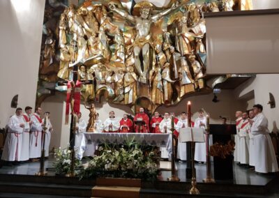 Uroczystość, tradycyjnie, rozpoczyna się Mszą Świętą pod przewodnictwem ks. Pawła Krężołka SDS – superiora tutejszej wspólnoty zakonnej. Przy ołtarzu stanęli również: ks. Teodor Sawielewicz – z archidiecezji wrocławskiej, prezbiter, autor książek i tekstów piosenek, rekolekcjonista, założyciel społeczności Teobańkologia, ks. Henryk Łodziana SDS, ks. Edward Wanat SDS, ks. Grzegorz Jabłonka SDS oraz ks. Grzegorz Badura z parafii św. Józefa Robotnika w Ujsołach.