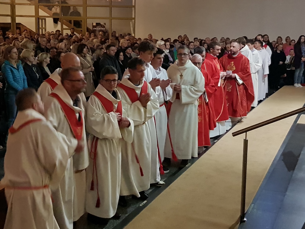 „Czujcie się pozdrowieni i przywitani po imieniu, na tym salwatoriańskim wieczerniku, gdzie jako ludzie wiary, przychodzimy, aby spotkać Pana Jezusa. Jesteśmy w miejscu gdzie od lat posługują salwatorianie, których założyciel błog. o. Franciszek Maria od Krzyża Jordan, którego popiersie znajduje się w tym kościele, zostawił taką dewizę życia: „dopóki żyje na świecie choćby jeden tylko człowiek, który nie zna i nie kocha Jezusa Chrystusa, nie wolno ci spocząć.” Chciejmy te słowa naszego błogosławionego założyciela brać do swego serca i zrobić wszystko, abyśmy nie spoczęli dopóki sami nie spotkamy Jezusa. Szczególnie w tych momentach, które są trudne i naznaczone krzyżem, w naszym życiu.”