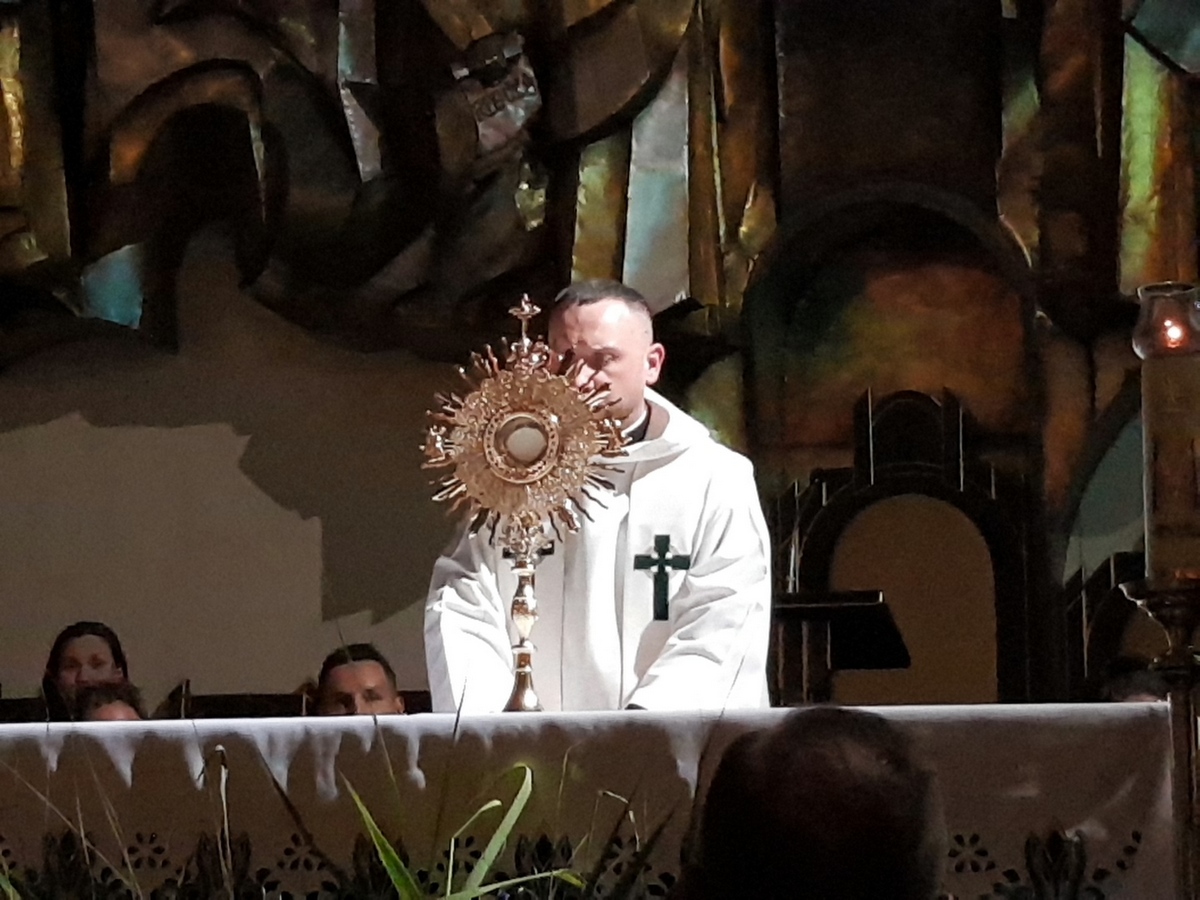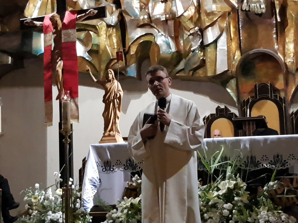 Kapłan przypomniał również, że – „Spotykamy się w święto św. Andrzeja Boboli, prezbitera, męczennika, patrona Polski. Pan Bóg stawia na naszej drodze życia świętych, którzy pokazują, że świętości nie zdobywa się w jakiś cudowny sposób, ale przez codzienność. On zdobył świętość przez codzienne życie, jako kapłan, jako człowiek, który szedł za Jezusem. Niech ten wielki święty wspiera nas, niech nam towarzyszy, niech będzie dla nas ważny i prowadzi nas w tym Wieczorze Uwielbienia”.