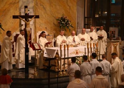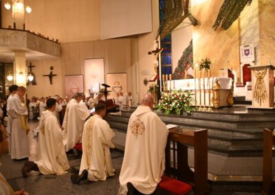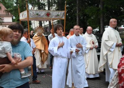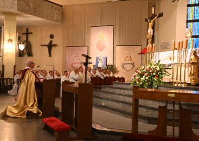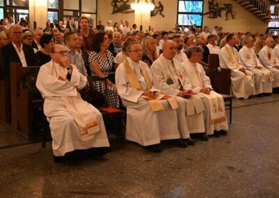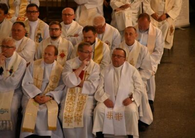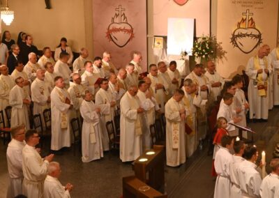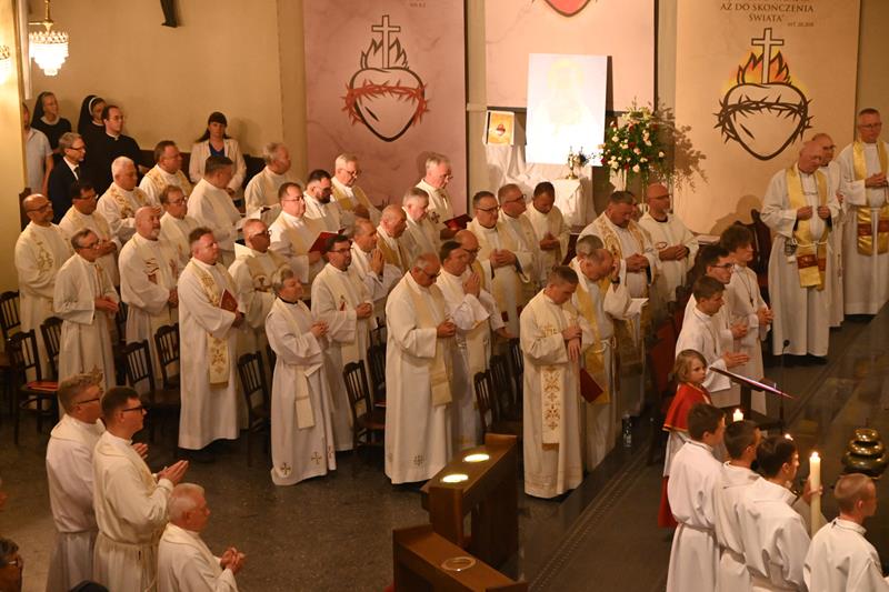 Przed rozpoczęciem liturgii wyświetlono multimedialne prezentacje dziewięciomiesięcznej nowenny, odprawianej w od 27 września 2024 r. w dziewięciu kościołach Najświętszego Serca Pana Jezusa na terenie naszej diecezji. Był to duchowy szlak przygotowujący wiernych do aktu zawierzenia. Uroczystości rozpoczęło nabożeństwo czerwcowe do Najświętszego Serca Pana Jezusa, które prowadził ks. proboszcz Marcin Aleksy.