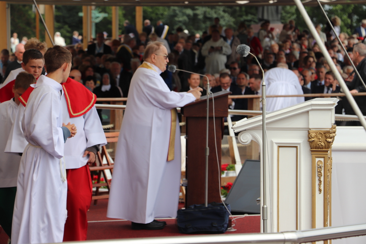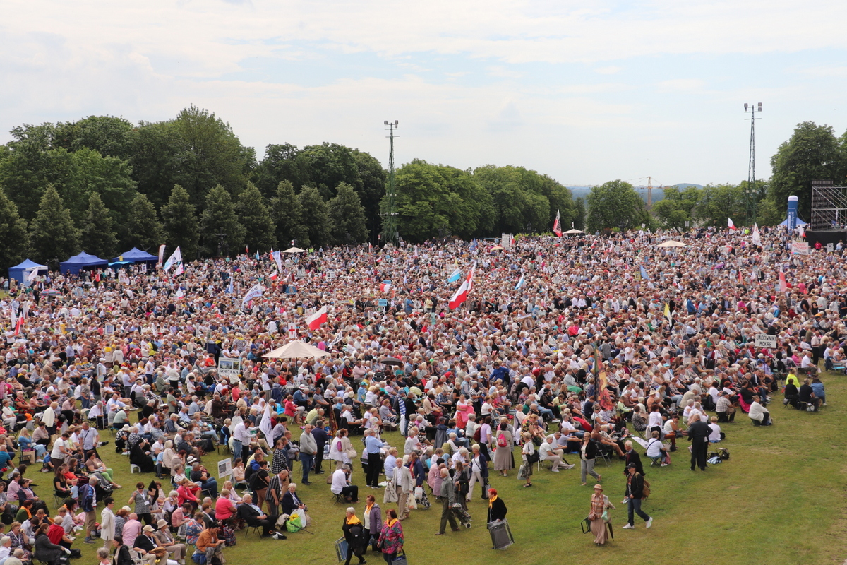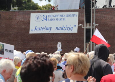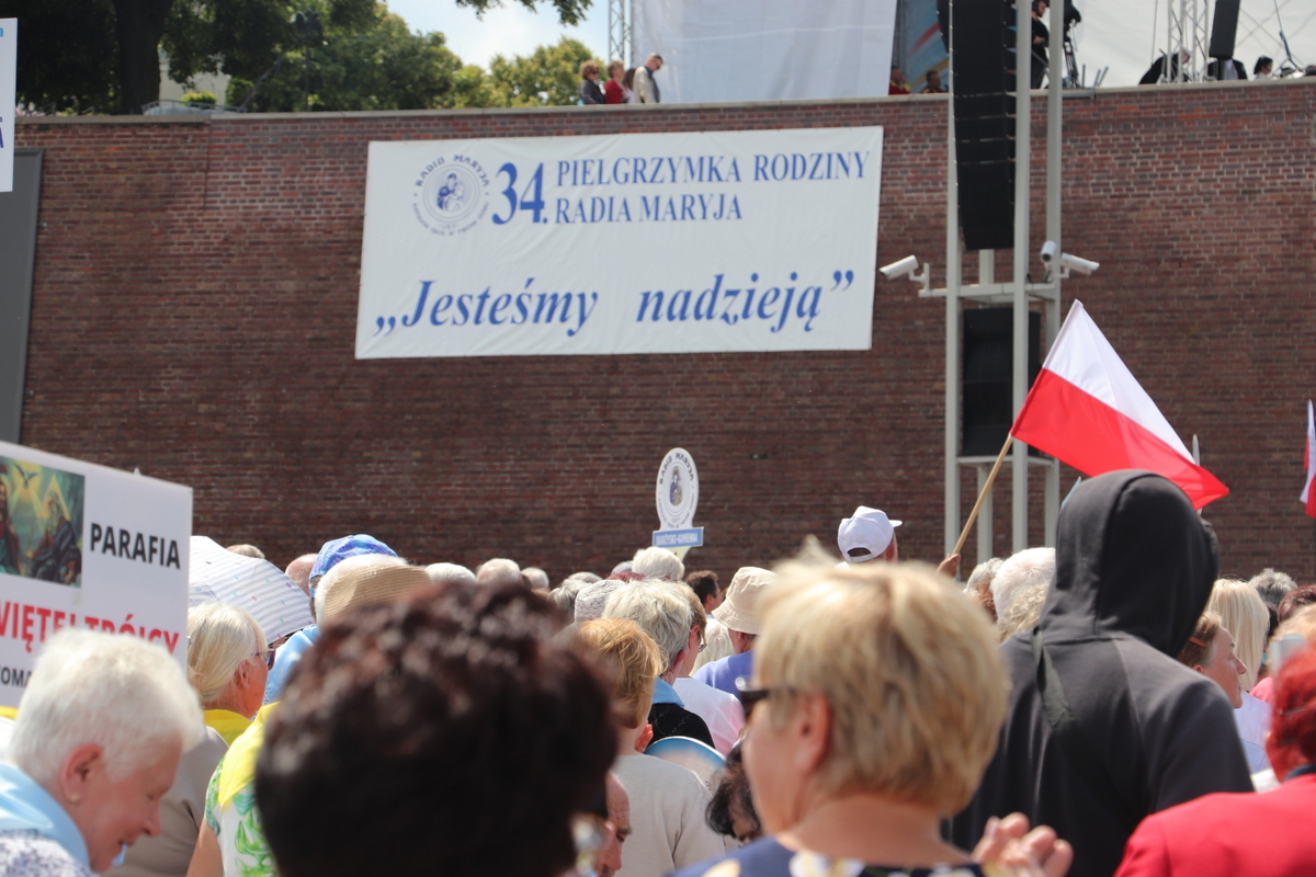 Zgromadzona przed tronem Maryi, królowej Polski, zapełniająca jasnogórskie błonia przed Jej ołtarzem, ogromna rzesza Rodziny Radia Maryja modliła się w sprawach bardzo ważnych – rodzin, kościoła i Polski. Jeszcze przed rozpoczęciem Eucharystii głos zabrał dyrektor i założyciel Radia Maryja o. Tadeusz Rydzyk CSsR przypominając m.in. słowa św. Jana Pawła II, który podkreślał, że Rodzina Radia Maryja ma wiele do zrobienia w Polsce, ma czynić to co mówi nam Pan Jezus: głosić Ewangelię wszystkim, wtedy w Polsce będzie dobrze, wtedy Polska będzie piękna, sławna i wszyscy będą ją szanować. Rodzino Radia Maryja, Bóg zapłać, że tutaj jesteście. Niech Pan Bóg będzie uwielbiony przez każdego z was. Ważnym elementem naszej misji jest obrona wiary i katolickiej tożsamości Polski – nie pozwólmy poniewierać świętości – akcentował założyciel i dyrektor Radia Maryja.