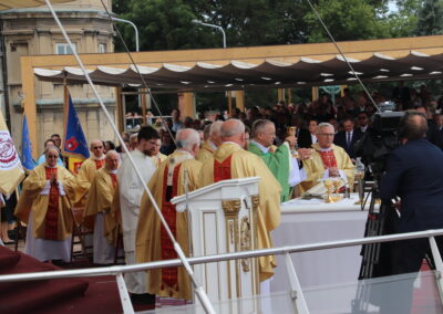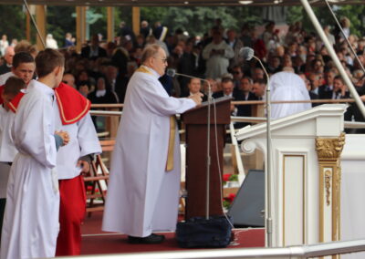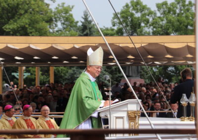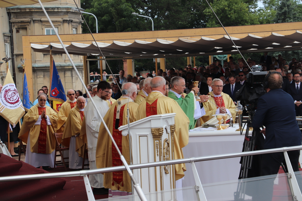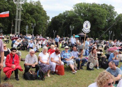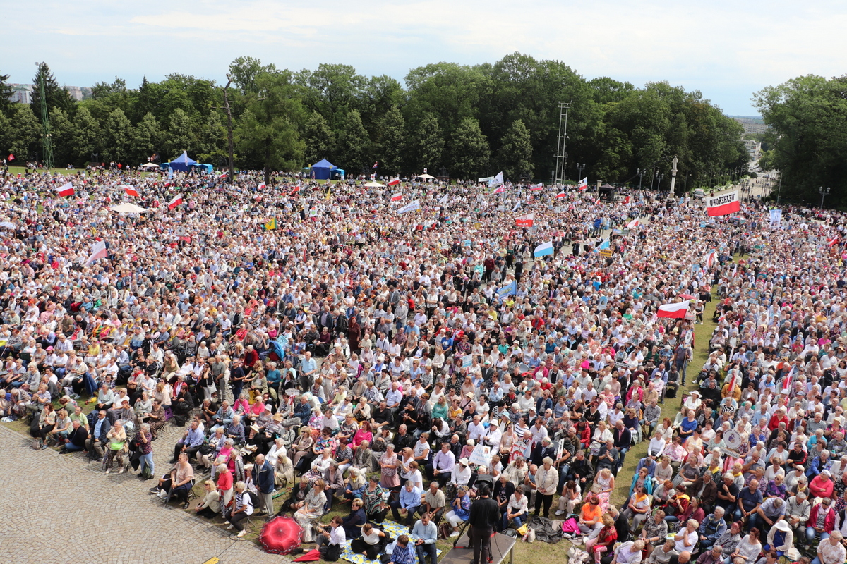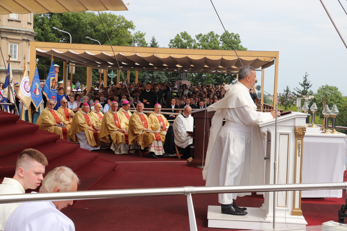 Zgromadzona przed tronem Maryi, królowej Polski, zapełniająca jasnogórskie błonia przed Jej ołtarzem, ogromna rzesza Rodziny Radia Maryja modliła się w sprawach bardzo ważnych – rodzin, kościoła i Polski. Jeszcze przed rozpoczęciem Eucharystii głos zabrał dyrektor i założyciel Radia Maryja o. Tadeusz Rydzyk CSsR przypominając m.in. słowa św. Jana Pawła II, który podkreślał, że Rodzina Radia Maryja ma wiele do zrobienia w Polsce, ma czynić to co mówi nam Pan Jezus: głosić Ewangelię wszystkim, wtedy w Polsce będzie dobrze, wtedy Polska będzie piękna, sławna i wszyscy będą ją szanować. Rodzino Radia Maryja, Bóg zapłać, że tutaj jesteście. Niech Pan Bóg będzie uwielbiony przez każdego z was. Ważnym elementem naszej misji jest obrona wiary i katolickiej tożsamości Polski – nie pozwólmy poniewierać świętości – akcentował założyciel i dyrektor Radia Maryja.