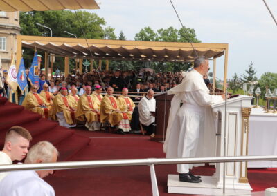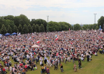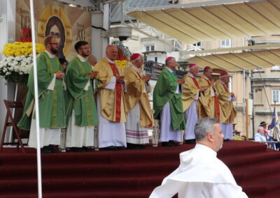 – Jesteście czasami jak pogotowie ratunkowe, które spieszy z pomocą nie tylko modlitewną. Jesteście jak heroldowie prawdy, także o współczesnych zagrożeniach dla rodziny, kościoła, ojczyzny, ze wschodu czy zachodu, których wielu, tych właśnie heroldów chciałoby uciszyć, zamknąć usta, wyłączyć odbiorniki. Jesteście wołającymi o sprawiedliwość dla tych, których skrzywdzono i poniżono. Odebrano dobre imię, którym odebrano poczucie godności ludzkiej. Nie pozwalacie o nich zapomnieć. To jest misja i ta misja buduje również tożsamość narodową – podkreślił ordynariusz diecezji zielonogórsko-gorzowskiej. Kontynuując podkreślił: – To wielkie dzieło: ewangelizacyjne, akademickie, kulturowe i społeczne, skupione wokół Radia Maryja i Telewizji Trwam i realizowane od czasu powstania, pozostaje dla mnie i – myślę, że zgodzimy się z tym – dla nas wszystkich tutaj zgromadzonych świadectwem odważnej wiary, pomimo wielu trudności i przeszkód. Za to pragnę podziękować i wyrazić przekonanie, że tego dzieła Kościół i Ojczyzna wciąż bardzo potrzebują, szczególnie na te trudne i niespokojne czasy. Nie byłoby tego dzieła, gdyby nie Rodzina – zaznaczył duchowny i podkreślił: że „głos prawdy, modlitwa, formacja chrześcijańska, upominanie się o sprawiedliwość, to aktualna pielgrzymka nadziei” i tą aktualną pielgrzymką idzie Rodzina Radia Maryja.