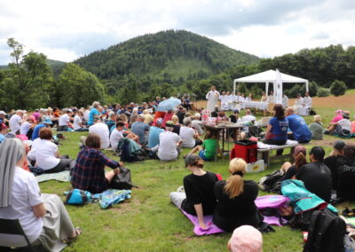 Modlono się w intencji Kościoła, misjonarzy, uczniów na wakacjach oraz za zgromadzonych uczestników górskiej ewangelizacji.