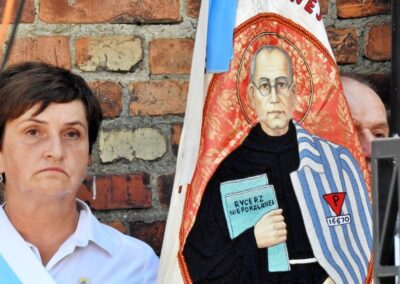 Jednak to miejsce stało się także świadkiem stosowania zupełnie innego środka. Przekazał go Chrystus tym, którzy w Niego wierzą, a który zastosował tu ojciec Maksymilian. Środek i sposób jego stosowania przedstawia Jezus w odczytanej dziś Ewangelii: „To jest moje przykazanie, abyście się wzajemnie miłowali, tak jak Ja was umiłowałem. Nikt nie ma większej miłości od tej, gdy ktoś życie swoje oddaje za przyjaciół swoich. Wy jesteście przyjaciółmi moimi, jeżeli czynicie to, co wam przykazuję” (J 15,12-14). Obyśmy pamiętali o tym przykazaniu, a tak mogli zaliczać się do przyjaciół Jezusa. Nawet, jeżeli nie jesteśmy zdolni do tej miary miłości, jaką okazał tutaj św. Maksymilian.”