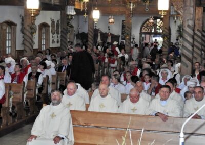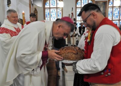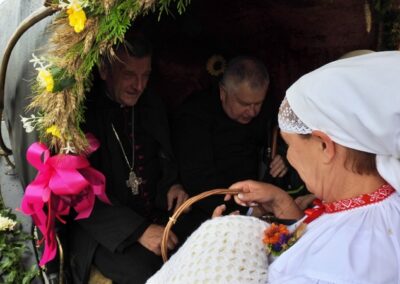 W liturgii uczestniczyły delegacje z całej diecezji, przedstawiciele władz samorządowych, rolnicy, górale beskidzcy w regionalnych strojach, a także liczni wierni. Uroczystościom towarzyszyło tradycyjne poświęcenie wieńców i chlebów dożynkowych, wniesionych w procesji przez starostów i drużbów. W modlitwie wierni dziękowali za tegoroczne plony, prosząc o Boże błogosławieństwo dla rolników i wszystkich pracujących na roli.