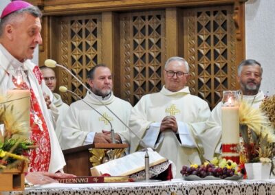 W dniu 14 września br. w parafii św. Bartłomieja Apostoła uroczystą Mszę świętą dożynkową sprawował ks. biskup Roman Pindel, a wraz z nim przy ołtarzu modlili się ks. Krzysztof Pacyga – proboszcz parafii , ks. Tadeusz Pietrzyk – dziekan istebniański i duszpasterzem rolników wraz licznymi księżmi z dekanatów naszej diecezji.