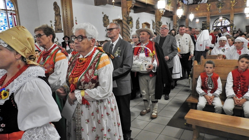 Liturgię ubogaciła uroczysta procesja z darami. Rozpoczęli ją starostowie Karolina i Jan Waszut, niosąc w darze chleb dożynkowy. Następnie wójt gminy Istebna Stanisław Legierski złożył dary stołu, a delegacje z poszczególnych przysiółków parafii przekazały kosze z regionalnymi przetworami. Dary ofiarowały także reprezentacje dekanatów całej diecezji bielsko- żywieckiej – część z nich przeznaczono na cele charytatywne.