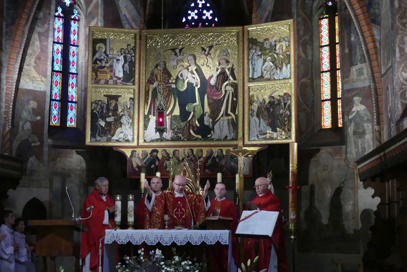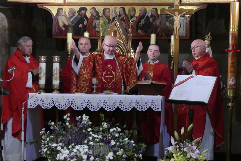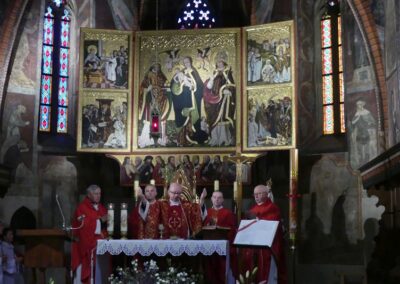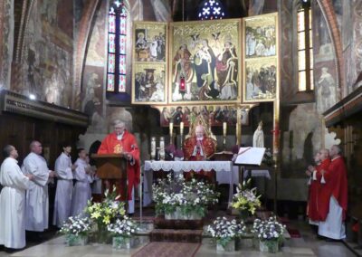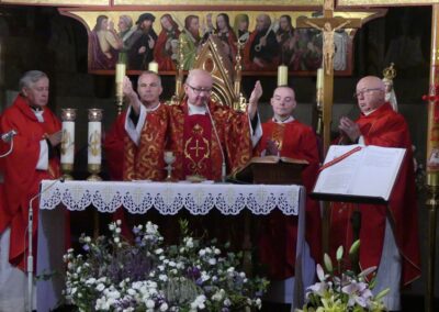 Mszy św. przewodniczył ks. Marcin Aleksy, dziekan dekanatu Bielsko-Biała I i proboszcz bielskiej parafii NSPJ wraz księżmi: Zygmuntem Siemianowskim – dziekanem dekanatu starobielskiego i proboszczem parafii, Sławomirem Kołatą- administratorem parafii św. Maksymiliana Kolbe, Józefem Oleszko- proboszczem parafii Trójcy Przenajświętszej oraz Patrykiem Zarębą – wikariuszem w parafii żywieckiej Miłosierdzia Bożego.
