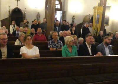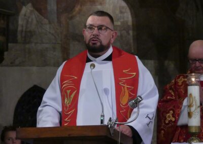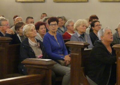 Homilię wygłosił o. Wojciech Pawlicki przypomniał, że krzyż jest znakiem zwycięstwa i pieczęcią Bożej miłości, która nie zna granic. O. Wojciech sięgnął do źródeł święta Podwyższenia Krzyża Świętego, które nawiązują do odnalezienia relikwii krzyża Jezusa oraz do wydarzenia z życia cesarza Konstantyna, który miał sen o zwycięstwie pod znakiem krzyża: „W tym znaku zwyciężysz”. Nawiązując do drugiego czytania z Listu św. Pawła do Filipian, o. Wojciech nazwał krzyż „pieczęcią Bożej miłości”. Bóg, jak wyjaśnił, szuka człowieka wszędzie, niezależnie od jego grzechów i upadków. „Krzyż jest znakiem wierności Boga wobec nas, choć my bywamy niewierni. On kocha nas nawet wtedy, gdy Go zdradzamy czy odwracamy się od Niego”.Ojciec Wojciech mówił także o doświadczeniu cierpienia w życiu wierzących. Przeciwnik Boga – zaznaczył – próbuje wykorzystywać krzyż jako pretekst do zwątpienia: „Demon pokazuje nam krzyż jako dowód, że Bóg nas nie kocha”. W takich chwilach rodzi się w człowieku pytanie: „Gdzie jest Bóg, skoro ja tak cierpię?” Tymczasem – jak powiedział o. Wojciech – Jezus poszedł na krzyż właśnie po to, aby człowiek nie został sam w swoim cierpieniu. „On nie chce, byś zginął na krzyżu swojego życia, dlatego chce go nieść razem z tobą”.Zachęcił wiernych, aby zaprosili Chrystusa w swoje osobiste doświadczenia – choroby, samotność, trudności w rodzinie, kapłaństwie czy pracy.