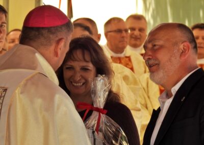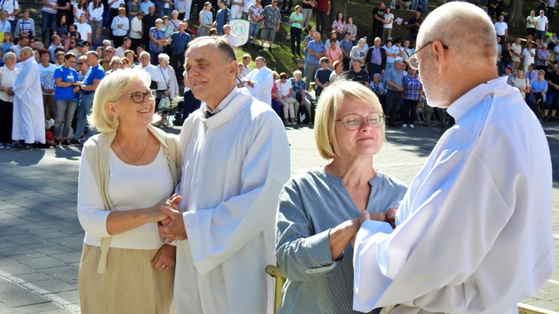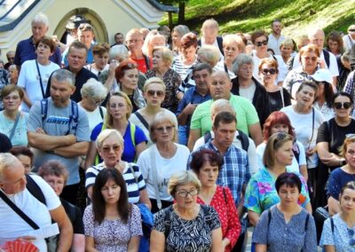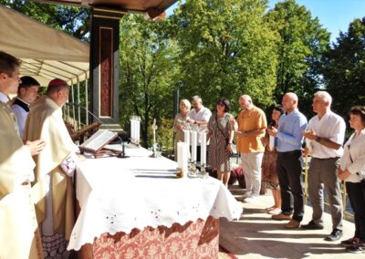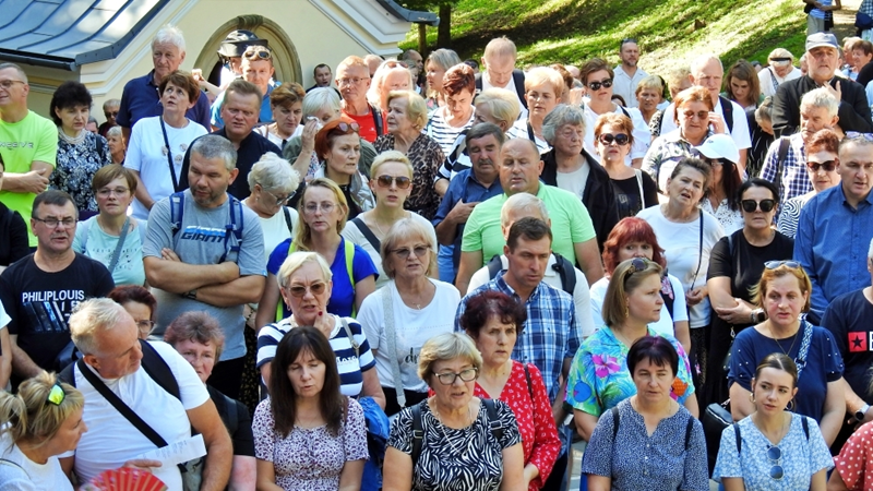 „Przybywamy w tym roku do Kalwarii Zebrzydowskiej, aby zastanawiać się nad tym, jakie przesłanie niesie hasło pielgrzymki, które brzmi: „Nadzieja w rodzinie”. Czy nadzieja winna być odnajdywana w rodzinie przez jej członków? Czy chodzi raczej o to, że nadzieja dla społeczeństwa tych czasów zamętu i niepokoju jest w rodzinie? Czy może, że świadectwo choćby niewielu rodzin czerpiących nadzieję od Boga, wskazuje źródła nadziei dla innych rodzin? Wobec przemian kulturowych, które przynoszą zerwanie więzów między pokoleniami, nadzieja w rodzinie, oparta tylko o zaufanie, wsparcie i solidarność, nie wystarcza. Na zachodzie już od dawna młodzi opuszczają wcześnie dom, oczekując wsparcia materialnego, ewentualnie pomocy, gdy nie ma gdzie zostawić dziecka. Gdy zaś zbliża się starość czy emerytura rodzice nie ośmielają się oczekiwać pomocy od swoich dzieci. Szukają w okolice najlepszego domu starców. Nadzieja w rodzinie, także i w naszych czasach, jest w pierwszym rzędzie łaską, której Bóg udziela, zwłaszcza, gdy człowiek prosi i na nią się otwiera. Ta nadzieja wpierw jest dla rodziców, później dla dzieci. Nadzieja w rodzinie pogłębia się w tych, którzy poznają, co jest jej treścią, by jej wpierw doświadczyć, by później o niej mówić i świadczyć w sposób wiarygodny. Źródłem poznania darów Bożych i wskazań odnośnie do życia jest Pismo święte i nauczanie Kościoła. Modlitwa zaś umacnia do świadczenia o nadziei odkrytej we własnej rodzinie, ale także wyprasza potrzebne łaski, przemianę i wierność wobec poznanego słowa Bożego. Dlatego też módlmy się dziś w sprawach naszej nadziei w naszej rodzinie, aby Bóg przemienił nasze serca według swoich najlepszych zamiarów oraz wysłuchał naszych próśb.” W czasie liturgii obecni małżonkowie, odnowili przyrzeczenia małżeńskie. Po Eucharystii przedstawiciele Domowego Kościoła – w zastępstwie nieobecnej pary diecezjalnej, jej poprzednicy w tej funkcji Jadwiga i Ryszard Borowcowie – podziękowali ks. biskupowi Romanowi za przewodniczenie pielgrzymce. Moderator diecezjalny ruchu ks. Łukasz Tlałka przedstawił z kolei nowe pary odpowiedzialne za rejony. W czasie i po liturgii śpiewem i muzyką towarzyszył pielgrzymom zespół „Faustystem”.