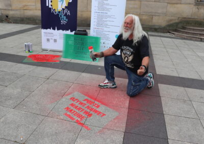 Wszystkie prezentacje poetyckie ubogacane były muzyką. Rozbrzmiewała ona równolegle z poezją. Wystąpili bardowie, pianiści, gitarzyści, soliści a nawet zespoły. Barwnym elementem spotkań stały się happeningi, w tym poetyckie strofy malowane na chodnikach placu Chrobrego w Bielsku – Białej. W Cieszynie na poetów czekała przewodniczka, która oprowadziła nas po mieście ciekawie opowiadając o jego historii.