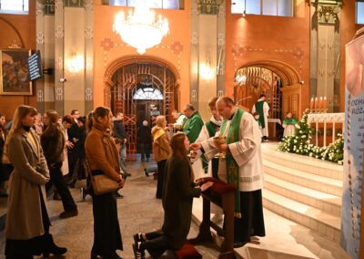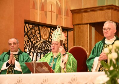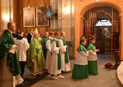 Mszy świętej koncelebrowanej przewodniczył ks. biskup Piotr Greger wraz księżmi; Antonim Młoczkiem- proboszczem parafii katedralnej i Wiesławem Płonką – diecezjalnym koordynatorem fundacji „Dzieło Nowego Tysiąclecia”.
