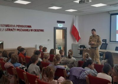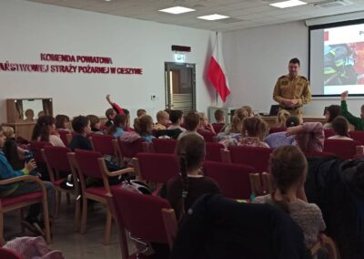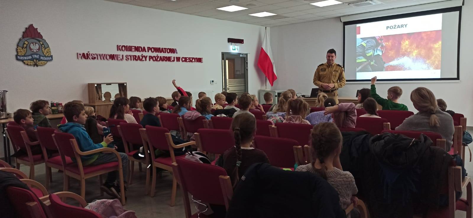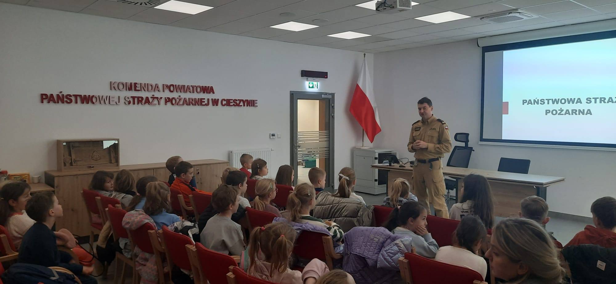 Na te i wiele innych pytań odpowiedzi poznały klasy 1 i 2 Katolickiej Szkoły Podstawowej w Cieszynie podczas wizyty w Sali „Ognik” – nowoczesnym centrum edukacyjnym, w którym dzieci uczą się, jak dbać o bezpieczeństwo swoje i innych.