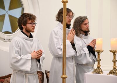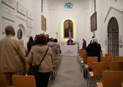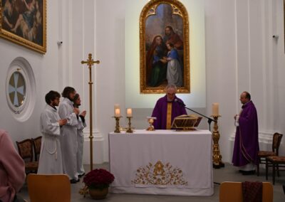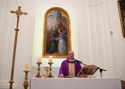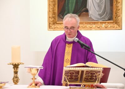 Homilię wygłosił ks. Tomasz, którą oparł na „Rozważaniach o śmierci” Karola Wojtyły – filozoficzno-religijnej medytacji nad przemijaniem, czasem i duchowym wymiarem ludzkiego istnienia. Ks. Tomasz przypomniał, że dla przyszłego papieża śmierć nie jest końcem, lecz przejściem – momentem prawdy i duchowego odsłonięcia. Ks. Karol Wojtyła ukazuje ją jako doświadczenie nadziei, wolności i spotkania z Bogiem – „Tym, w Kim istnienie znajduje całą swą przyszłość”. Wskazał też, że chrześcijańska wizja śmierci, w przeciwieństwie do egzystencjalnego lęku przed nicością, otwiera człowieka na nadzieję zakorzenioną w Ewangelii. Dzień Zaduszny daje nam coś, co trudno znaleźć gdziekolwiek indziej, moment absolutnej ciszy, czas na kontemplację, okazję aby wyciszyć natłok myśli i zająć się tylko pamięcią. Może to właśnie ten akt pamiętania, który wynika z potrzeby serca, a nie z obowiązku, sprawia, że Zaduszki mają tak wyjątkowy wymiar. To dzień, który mówi, że życie każdego z nas ma swój koniec, ale miłość i pamięć – te nie znają granic. Dzień Zaduszny nie jest łatwym świętem. Konfrontuje nas z uczuciami, które na co dzień odkładamy na bok- stratą, żalem, tęsknotą, Jest to dzień, kiedy przeszłość spotyka się z teraźniejszością w akcie pamięci w chwili skupienia, w której każdy z nas na swój sposób, próbuje znaleźć ukojenie w przemijaniu.