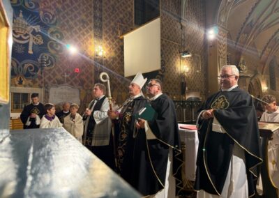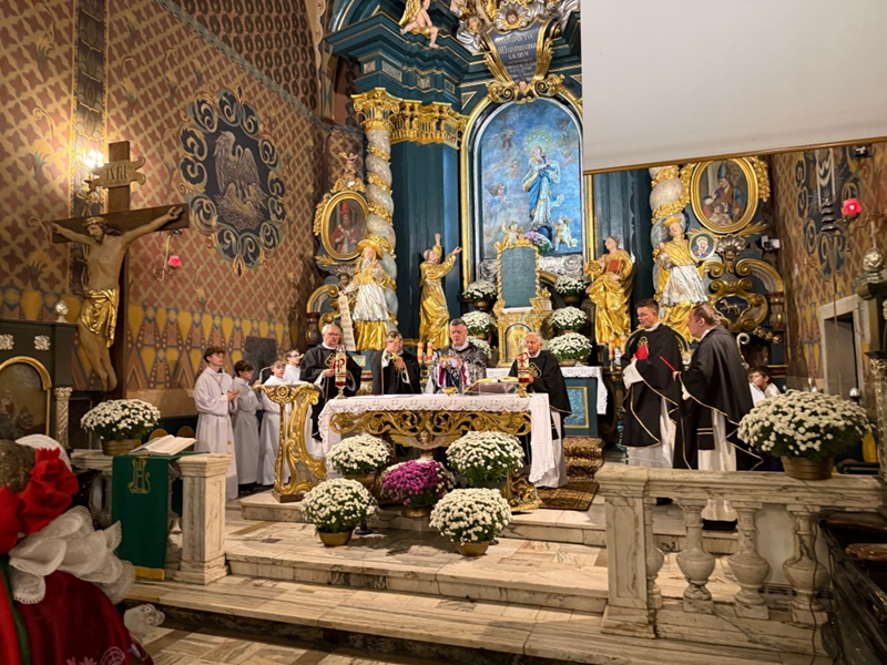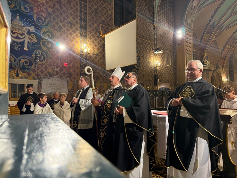 W Dzień Zadusznych w dniu 2 listopada br. w żywieckiej konkatedrze p w. Narodzenia Najświętszej Marii Panny, ks. biskup Roman Pindel odprawił Mszę świętą w intencji zmarłych pochowanych w kryptach oraz wokół świątyni. Wraz ks. biskupem Romanem przy ołtarzu modlili się z księża z dekanatu żywieckiego na czele z proboszczem konkatedry ks. Grzegorzem Gruszeckim.