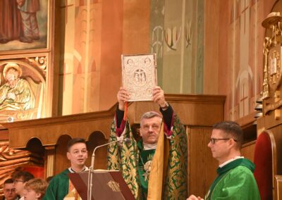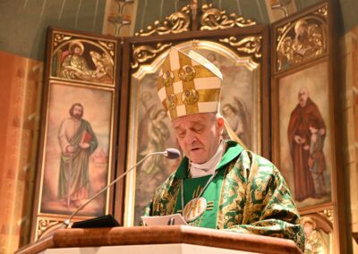 Na początku homilii ks. biskup Roman podzielił się wspomnieniem o wyjątkowym franciszkaninie, o. Augustynie Chadamie, pochodzącym z małej wioski Zaburze na Zamojszczyźnie. – „Był to człowiek, który całe życie dziękował swojemu nauczycielowi – Żydowi, który w jednoizbowej szkole uczył wszystkie dzieci, także religii katolickiej. To właśnie dzięki jego pasji młody Augustyn pokochał Pismo Święte i po ukończeniu szkoły wstąpił do franciszkanów”.