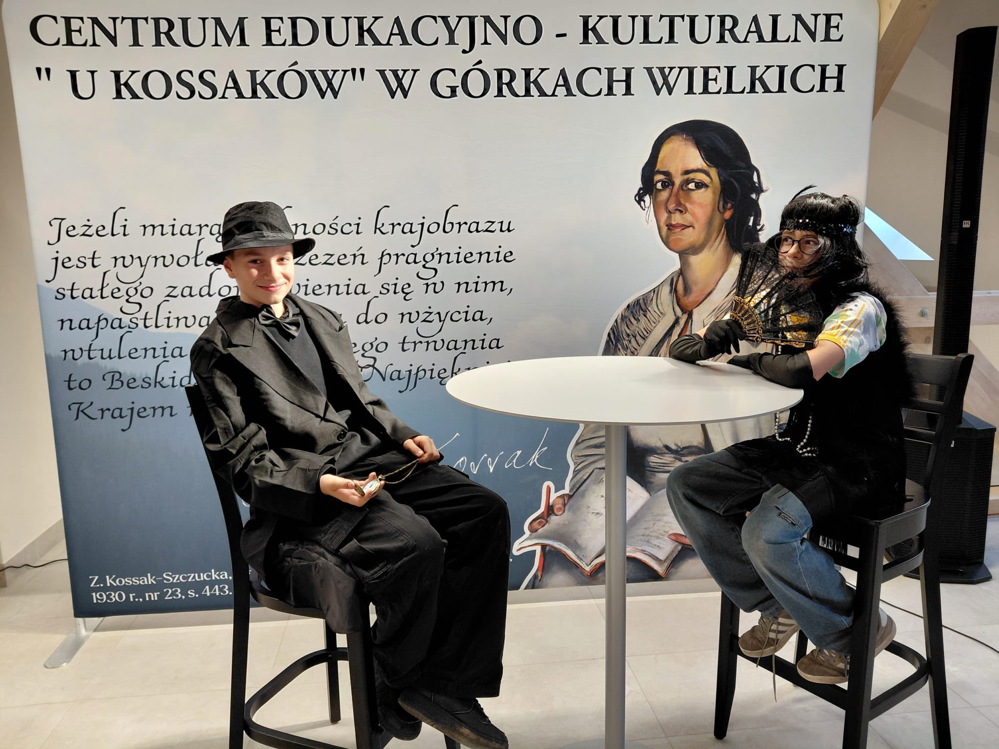 Uczniowie klas 6 i 7 podczas edukacyjnej wycieczki mieli okazję poznać atrakcje znajdujące się w Górkach Wielkich. Odwiedzili Muzeum Zofii Kossak-Szatkowskiej, zajrzeli do Dworu Kossaków, a w Centrum Edukacyjno-Kulturalnym „U Kossaków” uczestniczyli w zajęciach artystycznych oraz w niezwykle ciekawym spotkaniu z dr Joanną Jurgąłą-Jureczką, autorką licznych publikacji o tej znanej rodzinie. Na koniec czekała na nich dodatkowa atrakcja – niespodzianka. Uczniowie mogli przenieść się w klimat lat 20. i 30. XX wieku, zakładając stroje z epoki. Były to chwile pełne barw, radości i wrażeń, które na długo pozostaną w pamięci.