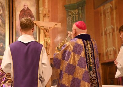 Uroczystą Eucharystię odpustową uświetnił śpiew Chóru Katedry Cantores Sancti Nicolai pod dyrygenturą Macieja Leśniaka .