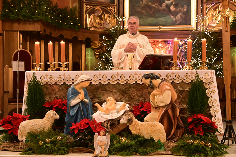 „ W dniu dzisiejszym gromadzimy się wokół tajemnicy, która od wieków nie przestaje zadziwiać. Bóg , który jest Wszechmocny, przychodzi do nas jako bezbronne Dziecko. Nie wybiera pałacu, nie otacza się potęgą i splendorem. Wybiera noc, ubóstwo, prostą grotę. Wybiera miejsce, w którym człowiek może powiedzieć: tu jest mi blisko. Bo właśnie tam, gdzie jest lęk, ból i niepewność, Bóg chce być bardziej obecny.