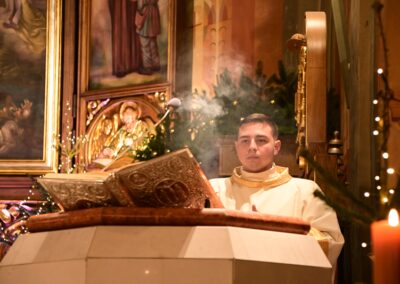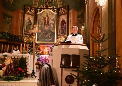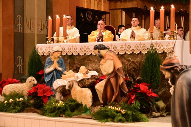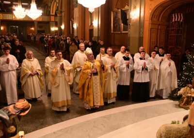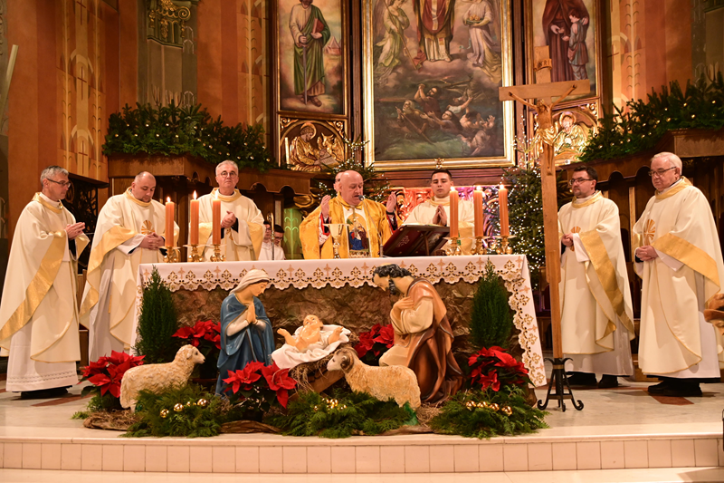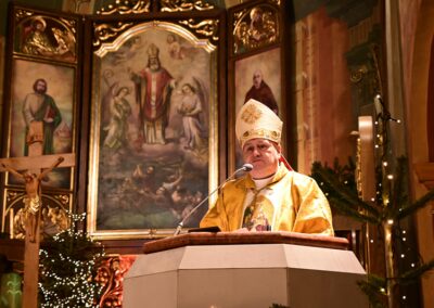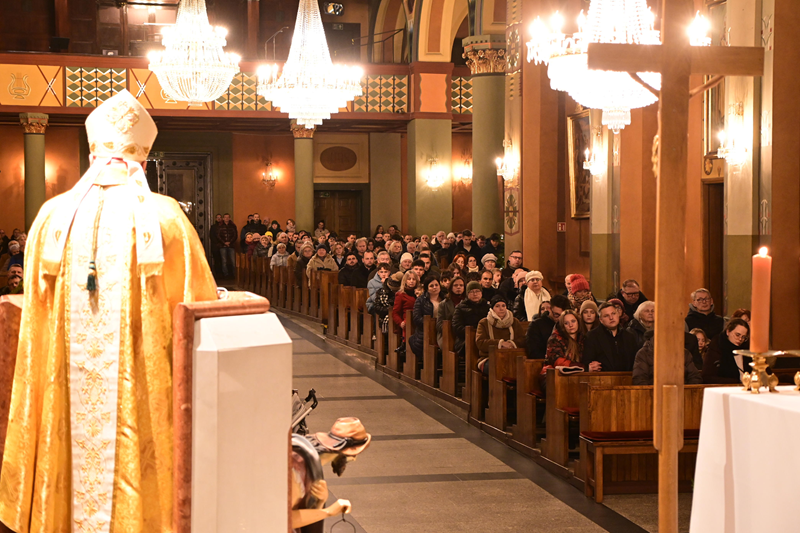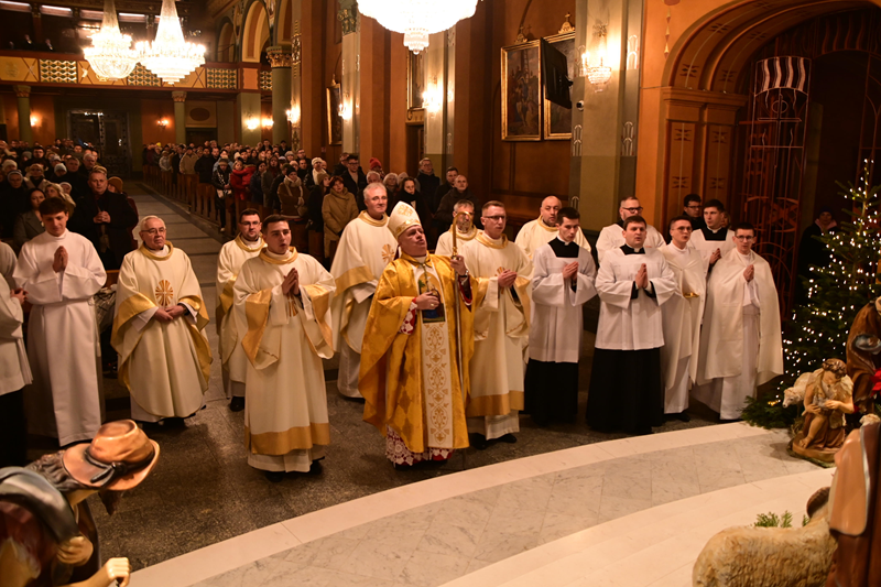 „Każdego roku, w świętą noc Narodzenia Pańskiego, powraca absolutnie wyjątkowy klimat ludzkiego dzieciństwa: radość pierwszego oddechu, płaczu i uśmiechu, zadowolenie z pierwszego spojrzenia w oczy szczęśliwych rodziców. Nieco później, nadchodzi czas radości z pierwszego wypowiedzianego słowa, samotnie postawionego pierwszego kroku, pierwszej myśli wyrażonej gestem. Czy to już wszystko? Czym zatem – w tym kontekście – jest Boże Narodzenie? Szczególnym znakiem przychodzącego tej nocy na świat Boga, cechą charakterystyczną Jego chwały i wszechmocy jest słabość dziecka. Bożym znakiem jest to, że On staje się mały, jest niemowlęciem, pozwala się dotykać i prosi nas o miłość. Bóg staje się dla wszystkich małym dzieckiem, aby być znakiem szczególnej bliskości, która ma moc usuwania nikomu nie potrzebnych dystansów oraz wyzwalania z wszelkich lęków, obaw i niepewności o przyszłość. Tajemnica Wcielenia Syna Bożego to przede wszystkim radość zbawienia, nadzieja wynikająca z faktu, że wszelkie ludzkie nieszczęścia, niepowodzenia, tragedie i porażki, trudne i bolesne doświadczenia, z którymi człowiek spotyka się na co dzień, to wszystko zostało już przezwyciężone przez Tego, kto je wziął na siebie, aby w sposób ostateczny i definitywny nas od nich uwolnić. Jakie miejsce zajmuje w polskiej rzeczywistości połowy trzeciej dekady dwudziestego pierwszego wieku radość zbawienia dokonanego przez przychodzącego na ziemię Chrystusa? Gdybym teraz zszedł z tej ambony i przeszedł się po kościele katedralnym zadając chociaż niektórym pytanie: czy odczuwasz radość z narodzin swego Zbawiciela? A jeżeli odczuwasz, to jak ona się wyraża? – ciekawy byłbym odpowiedzi. A może w niejednym przypadku odpowiedzią byłoby dosyć kłopotliwe milczenie? Jednak bez względu na wyniki tej domniemanej ankiety, jedno wydaje się być pewne. Każdy człowiek, czy sobie to uświadamia czy nie, Boga potrzebuje. To jest fundamentalna potrzeba tych, którzy twierdzą, że w Niego nie wierzą albo którym tak się tylko wydaje. Potrzebują Go ci, którzy w ogóle o Nim nie myślą, ponieważ są przekonani, że zbawi ich obfitość posiadania, przyjemność, sława czy kariera. Pragnienie Chrystusa jest obecne także w życiu tych, którzy już we wszystko i we wszystkich zwątpili, a zbawienia szukają w używkach i codzienność spędzają daleko poza marginesem zwykłego ludzkiego życia. Wszyscy potrzebujemy Boga, gdyż w każdym człowieku istnieje tęsknota za lepszym światem niż ten, którego doświadczamy. Świat, na który czekamy, za którym tęsknimy i do którego zmierzamy, to rzeczywistość obecności Boga, który nieustannie kocha, miłuje człowieka i pragnie jego zbawienia. To świat Boga, który tak mocno zapragnął być blisko człowieka, że sam stał się Człowiekiem. To jest główny kierunek naszego chrześcijańskiego pielgrzymowania. Droga naszego życia i cel życiowej wędrówki zawsze zmierza na spotkanie z Tym, który dziś dla nas się narodził.