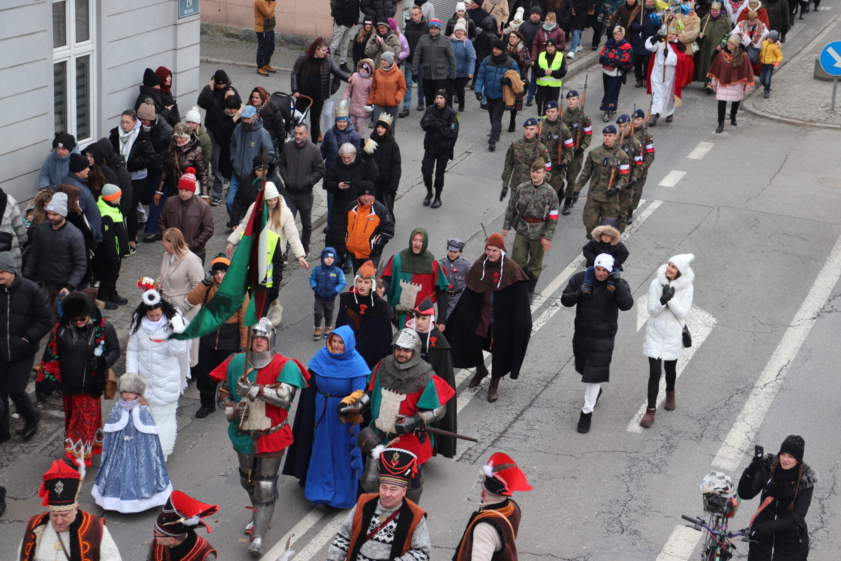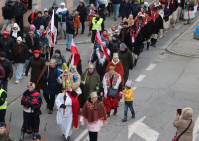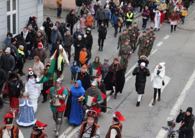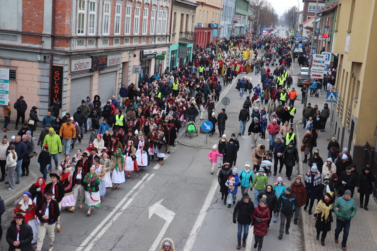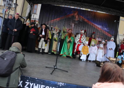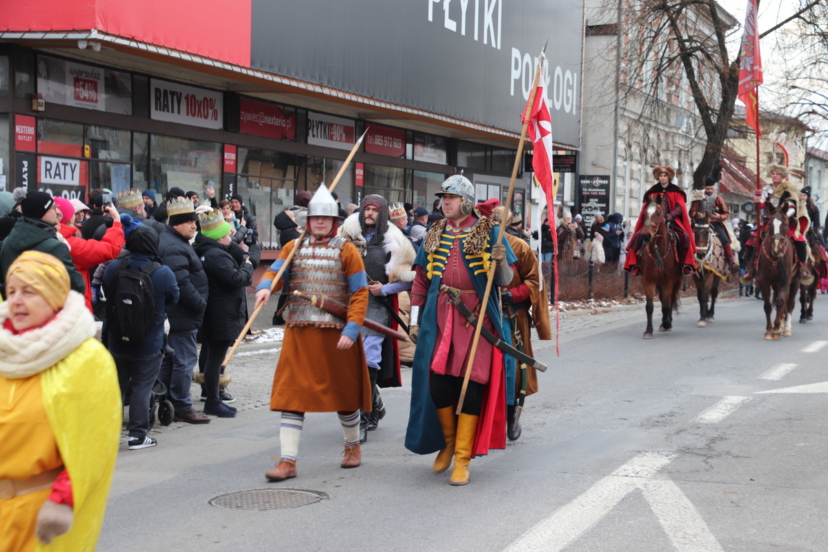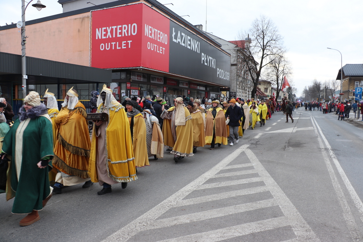Po zakończonej Mszy Św. uformował się orszak z przewodnictwem Trzech Króli, który przeszedł ulicami: Dworcową, Kościuszki na Rynek miasta. W korowodzie uczestniczyli Jukace Zabłoccy, Beskidzcy Harnasie, Bractwo Rycerskie „Chorągiew Żywiecka”, Stowarzyszenie Dzieci Serc z Radziechowa, zespoły muzyczne, wspólnoty dziecięce, młodzieżowe działające przy parafiach przebrane za aniołki i pastuszki, Regionalny Zespół Pieśni i Tańca „Pilsko”, a Zespół Regionalny „Mieszczanie”, w trakcie przemarszu orszaku, poprowadził śpiew kolęd z nagłośnieniem.