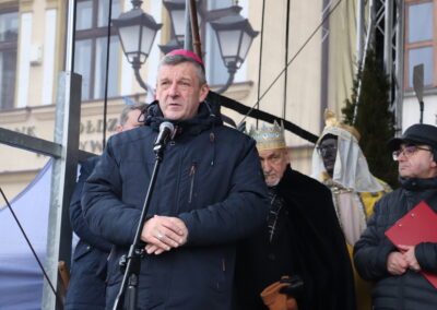 „Wyruszamy dziś w Orszaku Trzech Króli z Zabłocia na Rynek żywiecki, by tam oddać pokłon Jezusowi. Podobne orszaki wyruszają dziś w całej Polsce w dużych i małych miejscowościach, których liczba dochodzi do tysiąca. Łączy je hasło, które w tym roku brzmi: Nadzieją się cieszą. Nawiązuje ono do hasła Roku Jubileuszowego Pielgrzymi nadziei, a nawet Pielgrzymujący ku nadziei lub w kierunku nadziei (ł. Peregrinantes in Spem). Hasła mijającego roku i dzisiejszego orszaku wzywają, byśmy byli wciąż zorientowani na nadzieję i spodziewali się czegoś czy Kogoś od Boga, który jest gwarantem jedynej i najlepszej nadziei”.