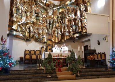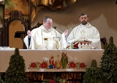 Rozpoczęło się Mszą Św, której przewodniczył gość specjalny, przyjaciel Hospicjum, prowincjał ks. Józef Figiel SDS – przełożony Polskiej Prowincji Salwatorianów z Krakowa w koncelebrze z ks. Grzegorzem Jabłonką SDS – superiorem, przełożonym wspólnoty zakonnej przy parafii, a także kapelanem Hospicjum Św. Kamila. Witając zebranych na rozpoczęcie Eucharystii ks. Grzegorz wskazał jej intencje modlitewne – „chcemy modlić się w intencji całego zespołu hospicyjnego, wszystkich dobrodziejów, członków hospicyjnego Ruchu Modlitewnego, za naszych podopiecznych i ich rodziny, oraz za wszystkich zmarłych podopiecznych i wolontariuszy a także za tych, którzy odeszli do Nieba”.