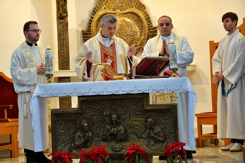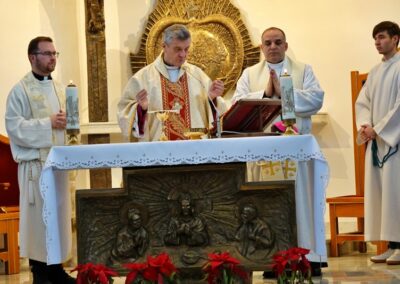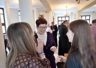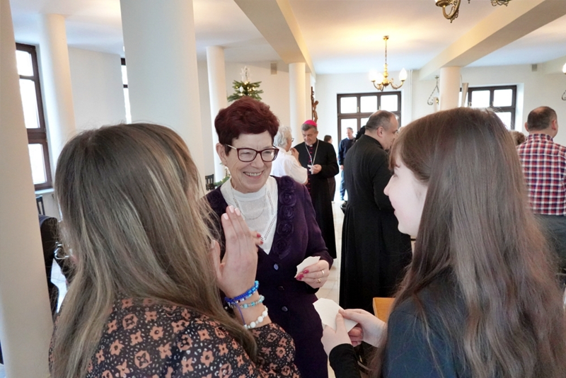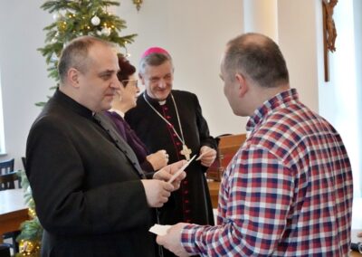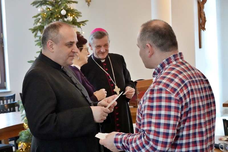 Po liturgii spotkanie przeniosło się do kurialnej jadalni, gdzie zebrani łamiąc się opłatkami składali sobie noworoczne życzenia.
