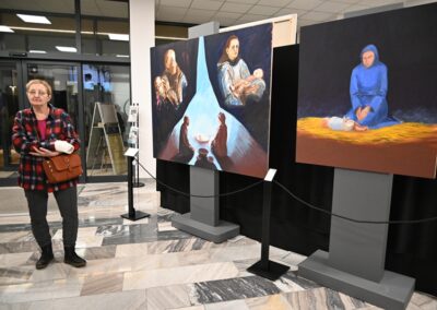 „Namalować katolicyzm od nowa” – to tytuł wystawy w Bielskiej Książnicy Beskidzkiej, którą uroczyście otwarto 20 stycznia br. Ekspozycja prezentuje obrazy poświęcone tajemnicy Bożego Narodzenia i jest czwartą odsłoną cyklu realizowanego według porządku tajemnic różańcowych.