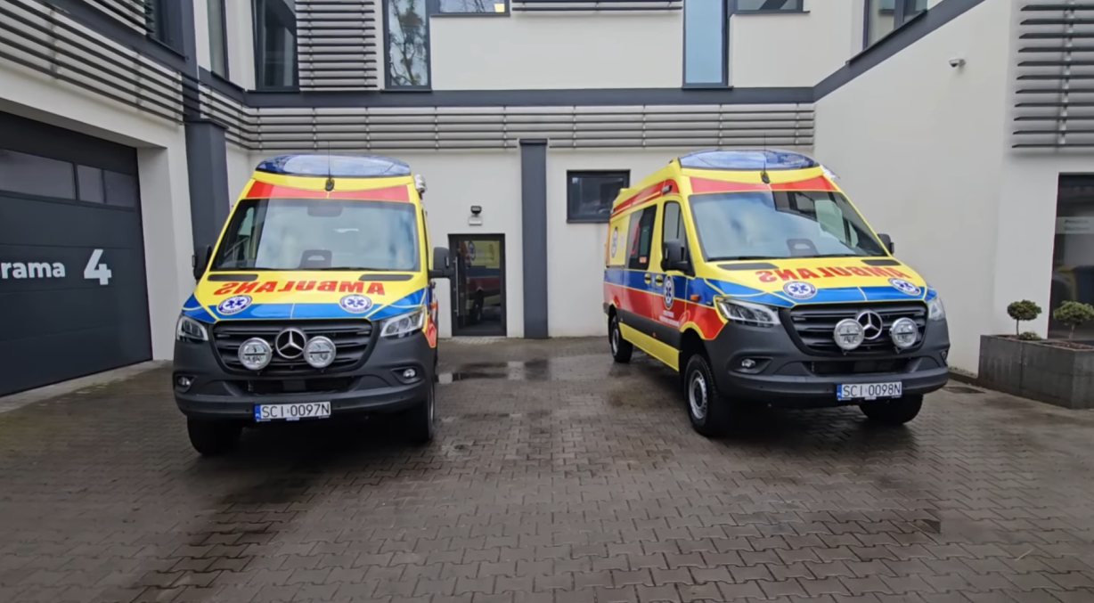Powitanie nowych ambulansów zakupionych z Programu Ochrony Ludności i Obrony Cywilnej, z udziałem Wojewody Śląskiego Marka Wójcika. a także podsumowanie innych działań realizowanych w ramach OLiOC.