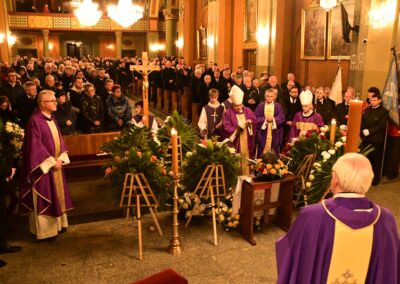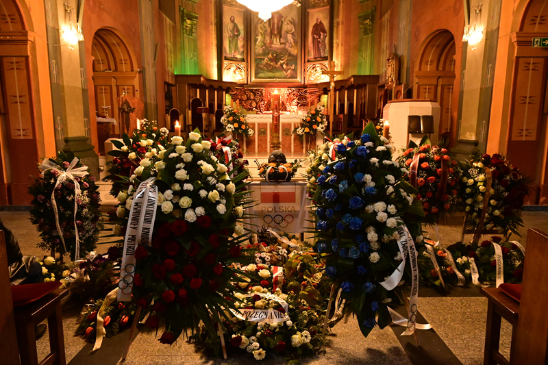 W uroczystościach pogrzebowych w bielskiej katedrze uczestniczyli licznie zgromadzeni wierni, rodzina, przyjaciele, przedstawiciele świata sportu oraz liczne poczty sztandarowe.