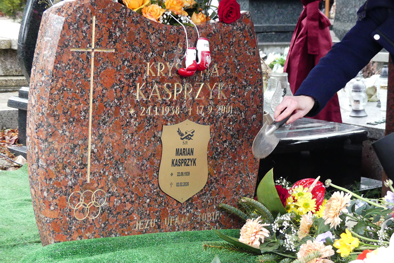 „Życie człowieka można opisywać czy definiować na wiele różnych sposobów. Patrząc na nie przez pryzmat doświadczenia możemy powiedzieć, że człowiek jest istotą żyjącą, która ciągle na coś czeka; zawsze w przekonaniu, że to jest przed nim będzie lepsze od tego, co jest teraz, a tym bardziej od tego, co jest już za nami (podać przykłady tego oczekiwania). Cechą wspólną tych wszystkich etapów oczekiwania jest nadzieja na lepszą przyszłość, ona jest motorem napędowym naszych oczekiwań. Aż trudno sobie wyobrazić, jakie byłoby życie człowieka, gdyby brakowało w nim nadziei. W tym modelu myślenia musimy być do końca konsekwentni, wszyscy czekamy na moment śmierci. Czy to oczekiwanie jest również pełne nadziei? A może jest przepełnione niepokojem, lękiem, poczuciem strachu, bo co będzie ze mną tam, na drugim świecie, za progiem śmierci? Jaki będzie mój wieczny los? Dla naszego brata śp. Mariana to oczekiwanie się już zakończyło. Odszedł z tego świata w dniu liturgicznego święta Ofiarowania Pańskiego, a pogrzeb ma miejsce, kiedy na terenie Italii odbywają się zimowe igrzyska olimpijskie. To przypadek, a może jakiś znak, przez który Pan Bóg chce nam coś istotnego powiedzieć? Marian Kasprzyk traktował swoje życie na serio, poważnie, chociaż miewał też – jak każdy z nas – chwile słabości i upadków. W swoich licznych świadectwach, wygłaszanych w szkołach i wielu innych miejscach, gdzie był chętnie słuchany, wspominał o trudnej walce z własną chorobą nowotworową. Nie ukrywał spraw związanych z dolegliwościami w czasie choroby żony Krystyny, dla której poświęcił każdą chwilę, otaczając ją konieczną opieką. Wspominał również o zwycięskiej walce ze swoim uzależnieniem. Idea zmagania się z tym wszystkim, naznaczona determinacją, pełna poświęcenia i ofiary, była mu bardzo bliska; to nie było teoretyzowanie, to było życie. Żegnamy dziś wybitnego sportowca, świetnego pięściarza, ale nade wszystko – w naszej ludzkiej ocenie – dobrego, szanowanego i cenionego człowieka. Być może emocjonalnie nie potrafimy sobie z tym poradzić; dla niejednego z nas jest to ból trudny do uniesienia, ale nam trzeba się „wzbić” ponad emocje. Dlatego należy dopuścić do głosu tego, który nie jest Bogiem umarłych, lecz żywych; nie obrażać się na Niego, nie czuć się przez Niego odrzuconym czy zawiedzionym. Nasz udział w pogrzebie i pamięć modlitewna – jest najlepszą formą podziękowania złożoną dla śp. Mariana: za to że był, że żył wśród nas, że z nami i dla nas pracował, razem z nami gromadził się w kościele na modlitwie, że przez swoje osiągnięcia sportowe dał nam tyle radości, i to w czasach, kiedy doświadczaliśmy jej ogromnego deficytu. On już na ringu do walki nie stanie. Wierzymy w Boże miłosierdzie, i dlatego tutaj dziś jesteśmy. Ufamy, że Marian Kasprzyk po walce życia stoi przy Jezusie, który – jak sędzia na ringu – wyciąga rękę do góry zaznaczając w ten sposób jego ostateczne i definitywne zwycięstwo. Mamy nadzieję, że znalazł się w gronie tych, gdzie nie ma pokonanych; jest w nas ogromne pragnienie, aby mistrz sportu Marian Kasprzyk, znalazł się w miłujących objęciach Tego, który jest Mistrzem nad mistrzami. Prośmy więc Boga, aby Chrystus zmartwychwstały, którego na miarę swoich możliwości naśladował, będzie dla niego, a także w bliższej i dalszej przyszłości dla każdego z nas, nagrodą na wieki. Żywimy głęboką nadzieję, że znowu spotkamy się z Marianem w domu naszego Ojca i będziemy mogli sobie wzajemnie pogratulować z tego powodu, żeśmy życiowo odnieśli sukces”.