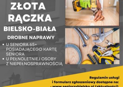 Kolejny rok seniorzy i osoby z niepełnosprawnością mogą korzystać z usługi „złota rączka” w Bielsku‑Białej. Usługa jest realizowana ze środków budżetu miasta na ten rok. Funkcjonowanie programu zaczęło się 9 lutego i potrwa do 18 grudnia br.