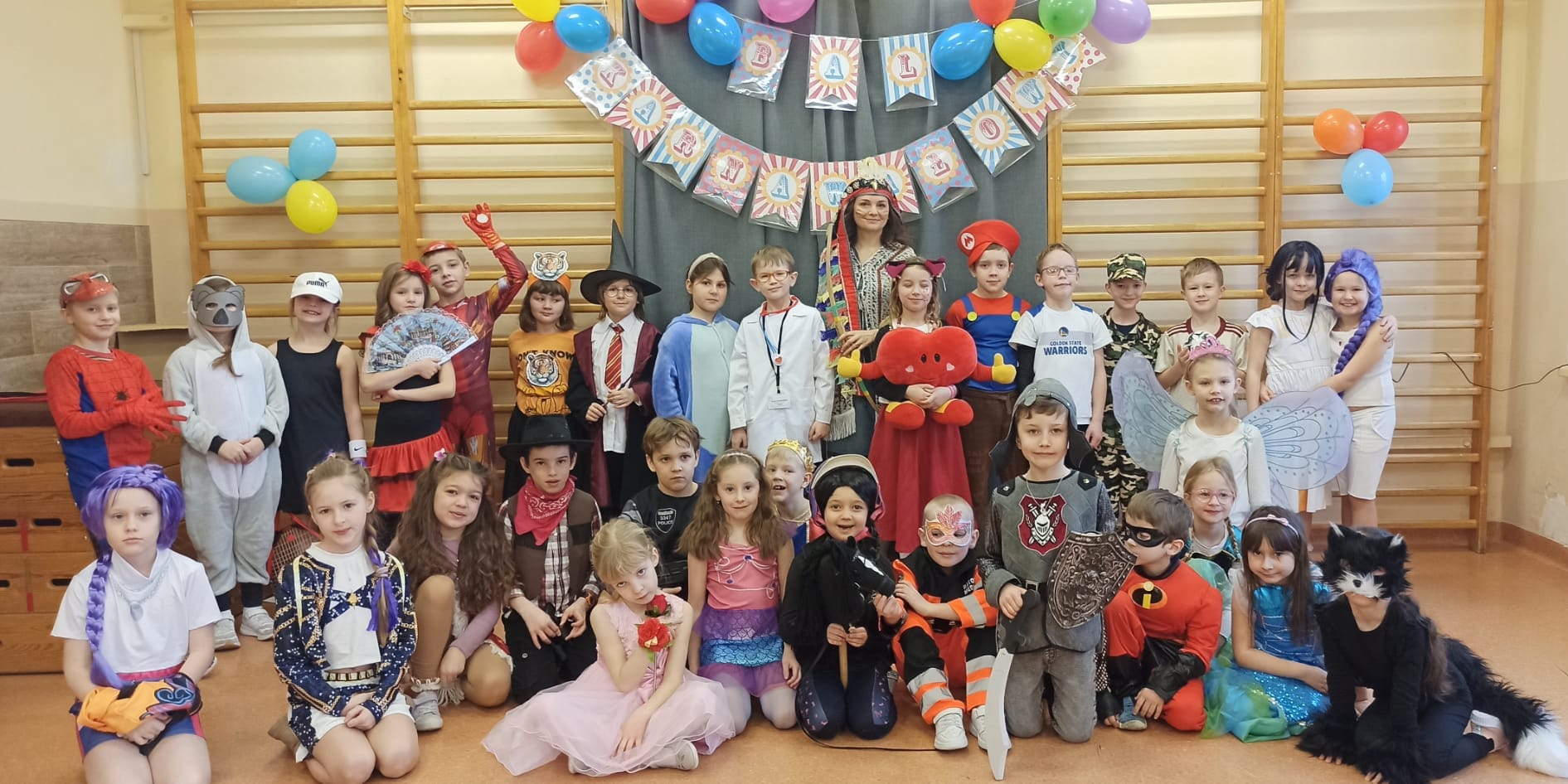 Na parkiecie pojawiły się księżniczki, superbohaterowie, żołnierze, zwierzątka, przedstawiciele służby zdrowia i wiele innych niezwykłych postaci. Każdy kostium był dopracowany, pomysłowy i wyjątkowy. Widać było, ile serca włożyli w nie zarówno uczniowie, jak i ich rodzice. Trudno było oderwać wzrok od tej barwnej mozaiki – sala zamieniła się w prawdziwą krainę wyobraźni.