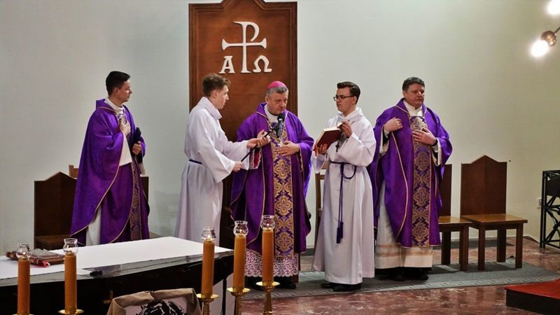 W Środę Popielcową 18 lutego br. ks. biskup Roman Pindel odprawił, w oświęcimskim kościele św. Maksymiliana Mszę św. koncelebrowaną wraz kapłanami: ks. Mariuszem Kiszczakiem- proboszczem parafii oraz Piotrem Górą- sekretarzem ks. biskupa Romana.