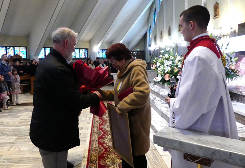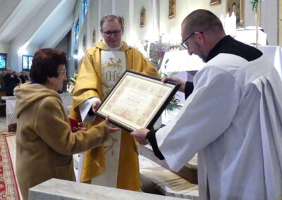 Podczas Mszy św. kanclerz naszej kurii bielsko- żywieckiej Adam Bieniek wręczył papieskie odznaczenie „Pro Ecclesia et Pontitifice” pani Grażynie Nalepie.