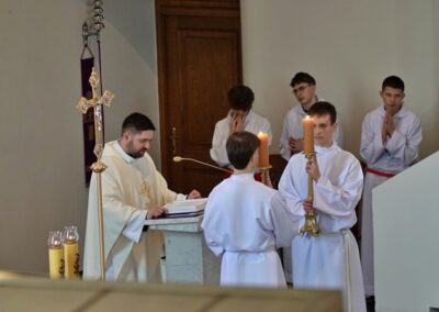 Po konferencji wygłoszonej przez ks. Bogusława, była adoracja Najświętszego Sakramentu, przeplatana rozważaniami, ciszą i śpiewem pieśni uwielbienia. Modlitwa zakończyła się błogosławieństwem Najświętszym Sakramentem..