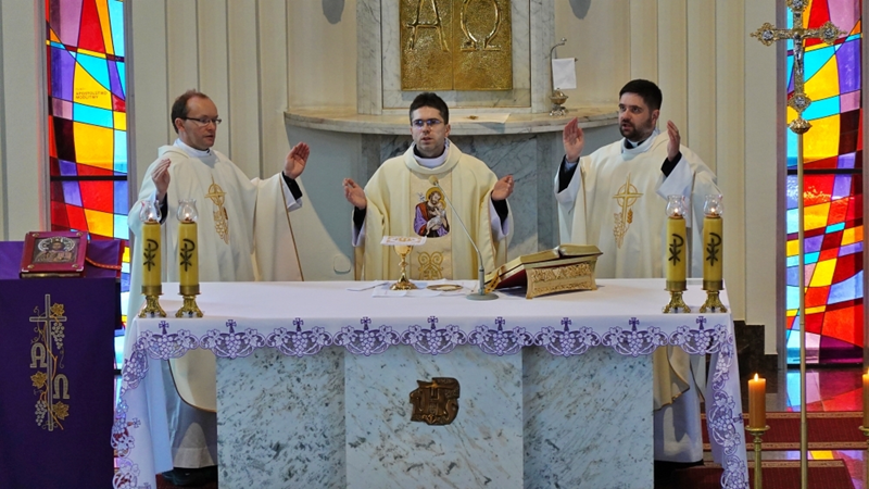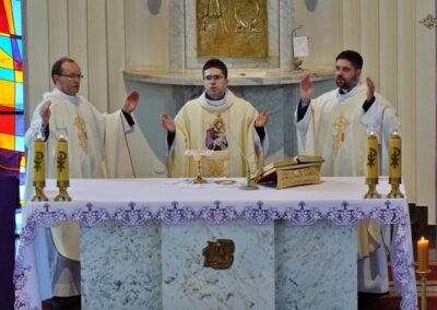 Najważniejszym momentem dnia była Eucharystia, której przewodniczył ks. Piotr Rajda- wikariusz w parafii NMP Królowej Polski w Czechowicach- Dziedzicach, a wraz z nim przy ołtarzu modlili się księża : Bogusław Kastelik i Dawid Surmiak- wikariusz parafii p w. Dobrego Pasterza w Istebnej.
