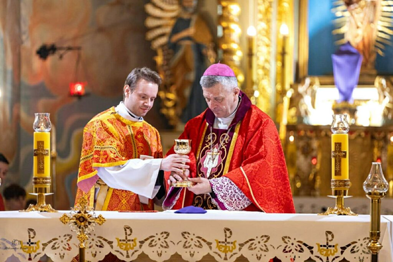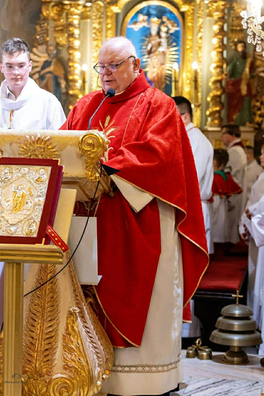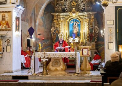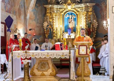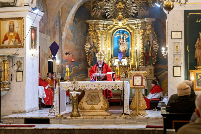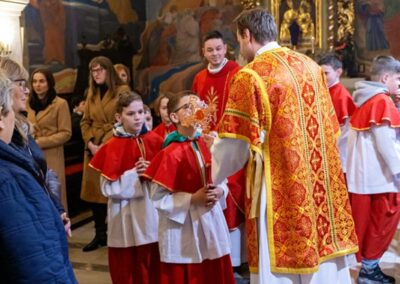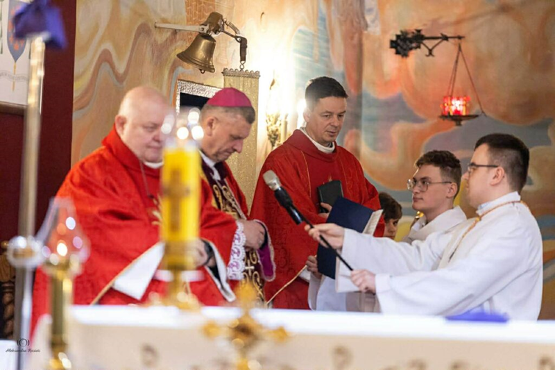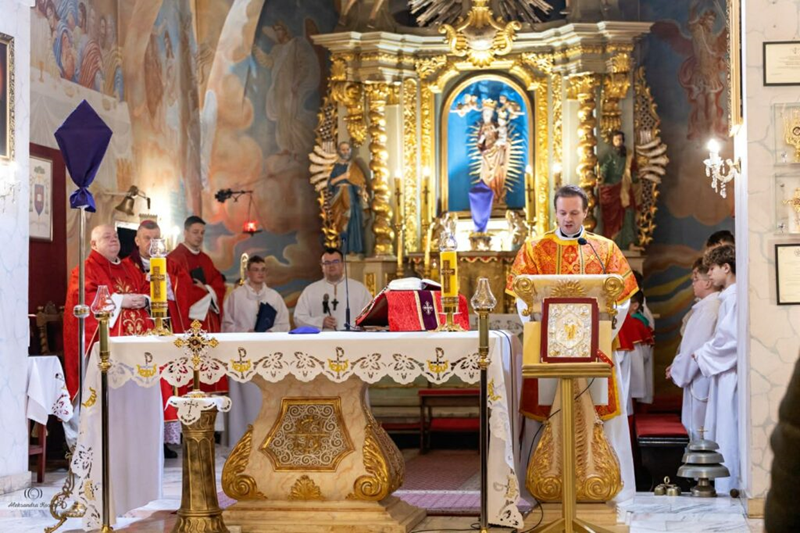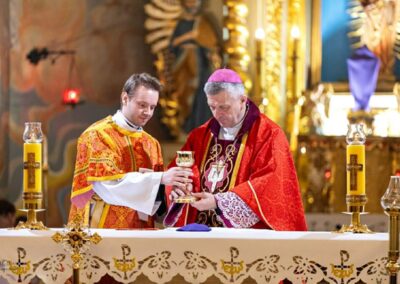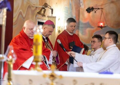 Uroczystej Eucharystii przewodniczył ks. biskup Roman Pindel wraz z ks. Piotrem Pokojnikowem- proboszczem parafii i ks. Piotrem Górą – sekretarzem ks. biskupa.
