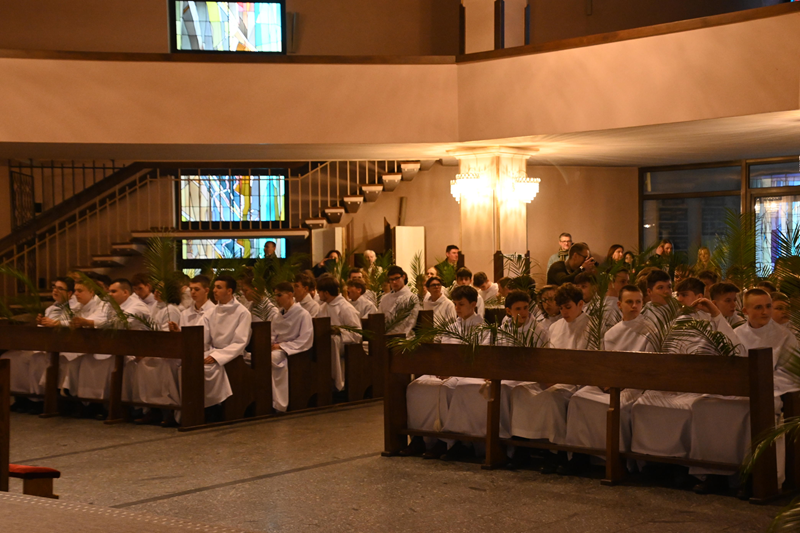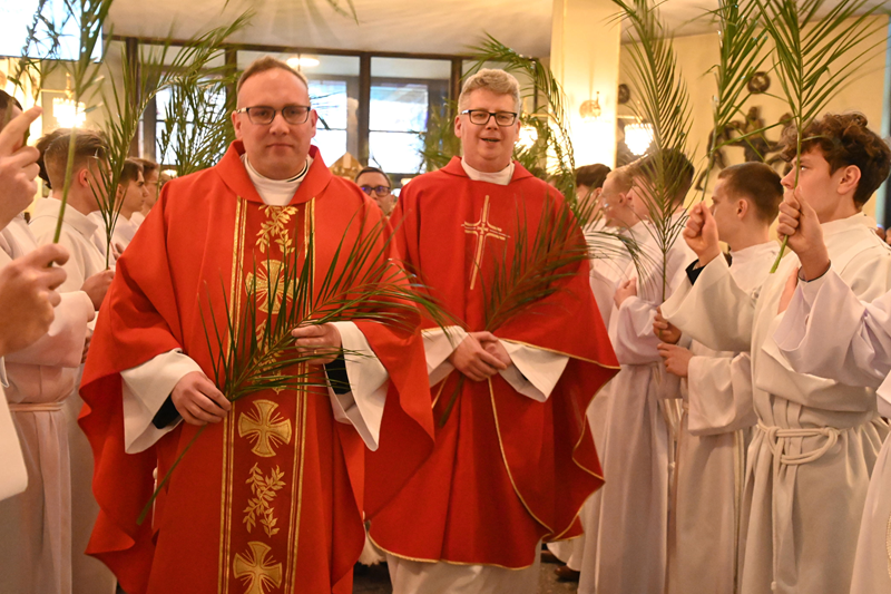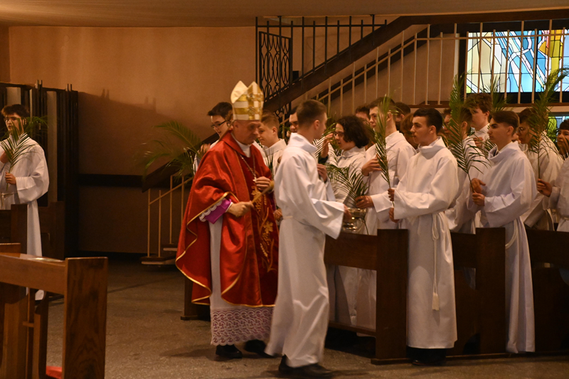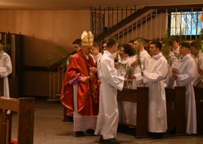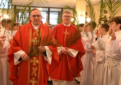 Uroczystość rozpoczęła się od poświęcenia gałązek palmowych oraz procesji, która przeszła z kaplicy Miłosierdzia Bożego do głównej świątyni. W jej trakcie wierni wspólnie weszli w liturgiczne przeżywanie Męki Pańskiej, nawiązując do ewangelicznego wjazdu Chrystusa do Jerozolimy.