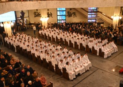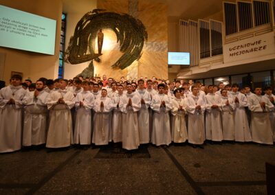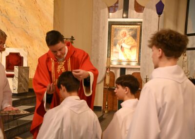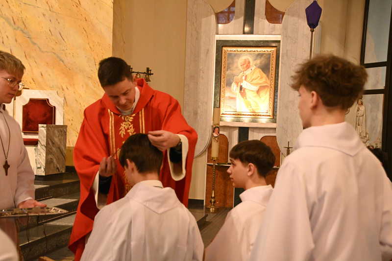 Drodzy animatorzy i ceremoniarze służby liturgicznej, w dniu waszego ustanowienia życzymy wam, abyście najpierw zawsze byli uczniami. Uczniami Jezusa zasłuchanymi w Jego słowo, bliskimi Jego sercu i wiernymi w codzienności. Niech ta szczególna posługa przy ołtarzu pomaga wam nie tylko pięknie służyć, ale także wzrastać w wierze, pokorze i miłości. Bądźcie uczniami, którzy słuchają. Bądźcie misjonarzami, którzy świadczą. Niech na tej drodze pomaga wam znak krzyża, który odtąd będzie spoczywał na waszych albach w czasie liturgii. Niech Chrystus was przemienia i prowadzi tam, dokądkolwiek was pośle”.