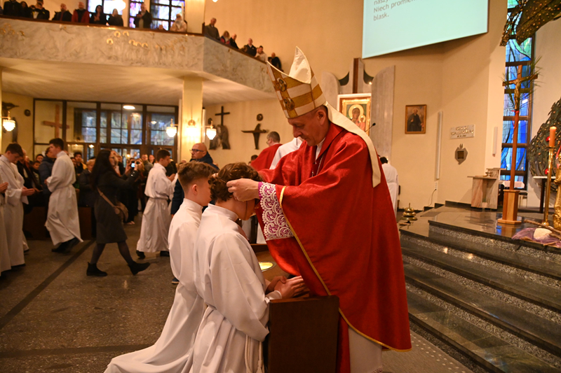 Pod koniec Mszy św. nastąpił obrzęd ustanowienia. 151 animatorom i ceremoniarzom ks. biskup Roman wraz z kapłanami nałożył na szyję poświęcone krzyże, które odtąd będą nosić na swoich albach jako znak powierzonej im funkcji i zobowiązania do wiernej służby przy ołtarzu. Kandydaci przygotowywali się do tej chwili przez cały okres Wielkiego Postu.