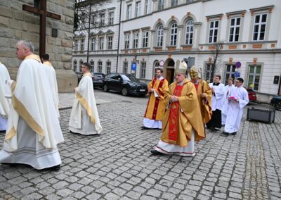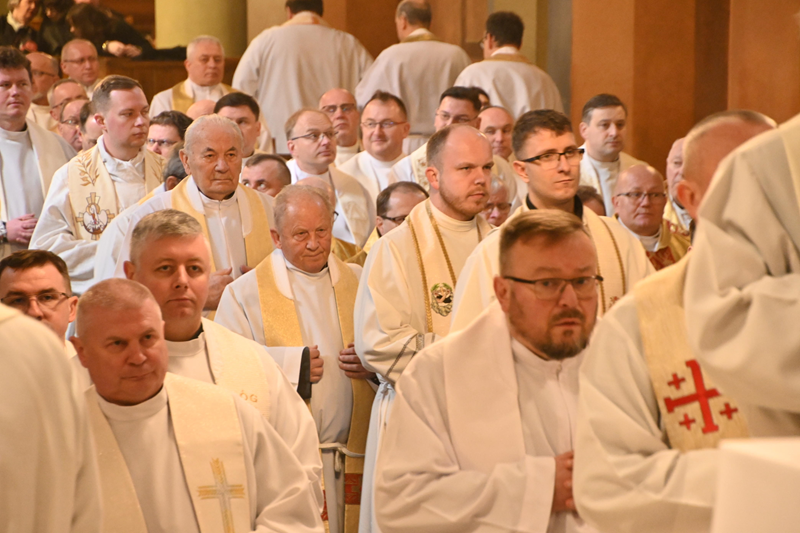 W modlitwie wspomniano również zmarłych kapłanów, którzy odeszli do wieczności od ubiegłorocznego Wielkiego Czwartku: ks. Andrzeja Tylkę, ks. Eugeniusza Stopkę oraz ks. Krzysztofa Żaka. Msza Krzyżma Świętego jest jednym z najważniejszych wydarzeń w życiu diecezji. W jej trakcie której ks. biskup ordynariusz poświęca oleje święte: krzyżmo, olej chorych oraz olej katechumenów, które następnie są rozwożone do wszystkich parafii i używane przez cały rok w sakramentach i obrzędach liturgicznych.