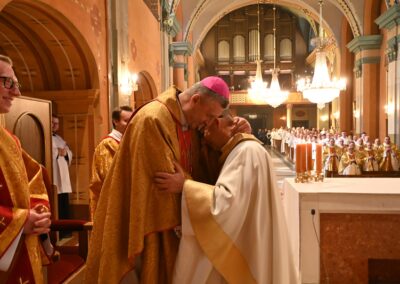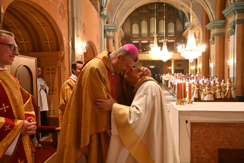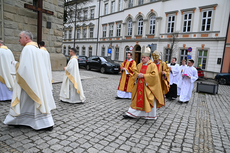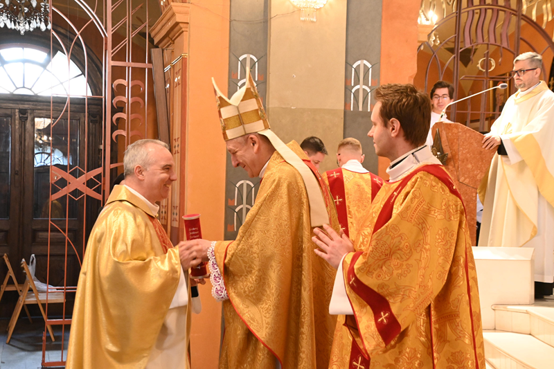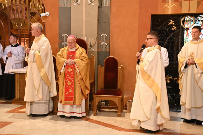 Życzenia w imieniu prezbiterium ks. biskupom wypowiedział wikariusz generalny diecezji ks. Marek Studenski, który zwrócił uwagę na wyjątkowy charakter Mszy Krzyżma, gromadzącej całe prezbiterium wokół biskupa. Ks. Marek mówił też o współczesnej sytuacji kapłana, który coraz częściej doświadcza bycia swoistą „persona non grata” – kimś niechcianym lub marginalizowanym w przestrzeni społecznej. Jak zaznaczył, nie może to jednak prowadzić do zniechęcenia, lecz powinno mobilizować do jeszcze większej wierności powołaniu i odwagi w dawaniu świadectwa, także w codziennych, zwyczajnych sytuacjach życia.